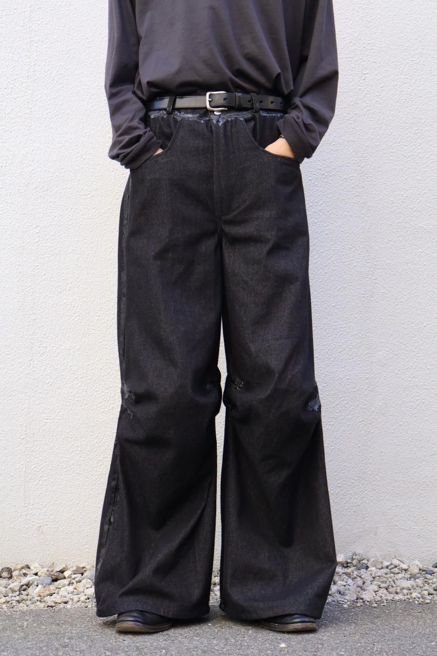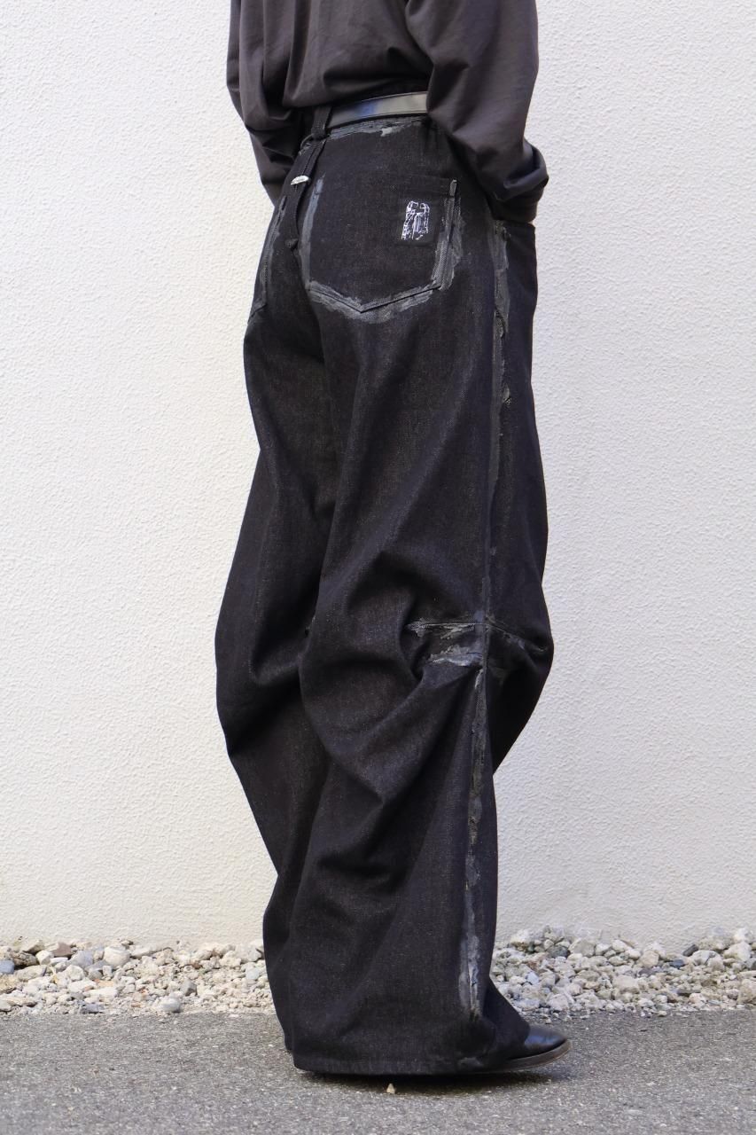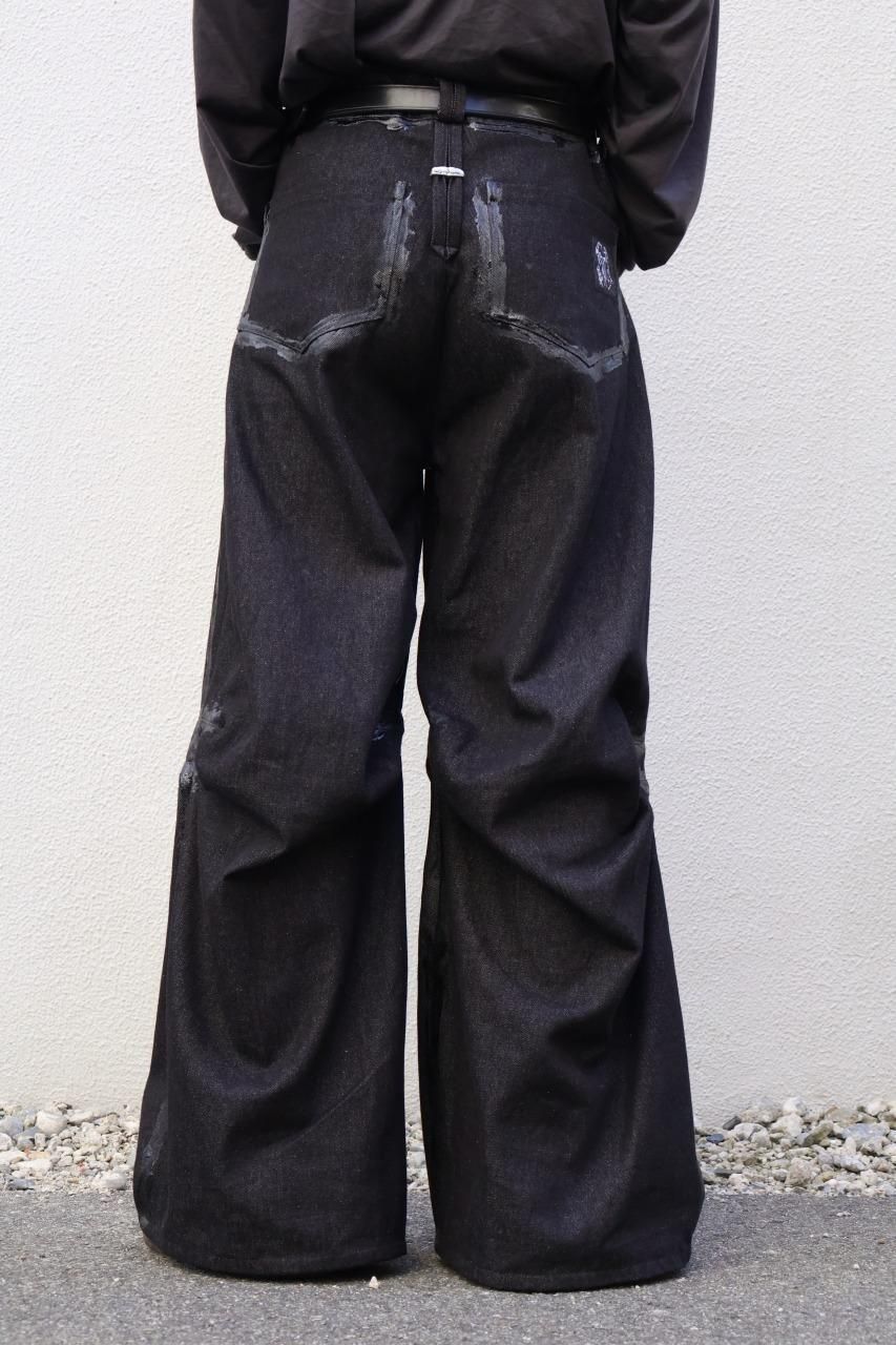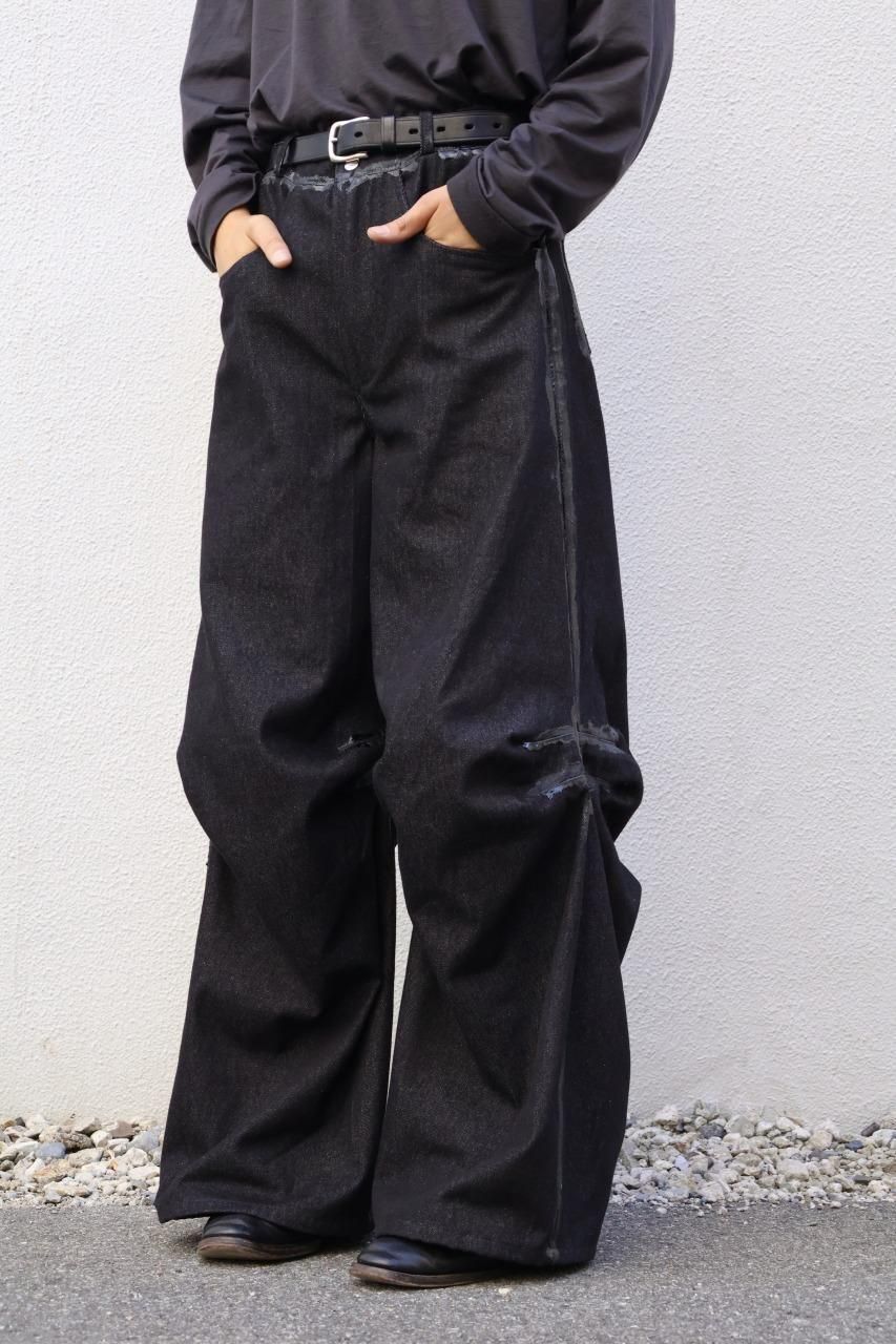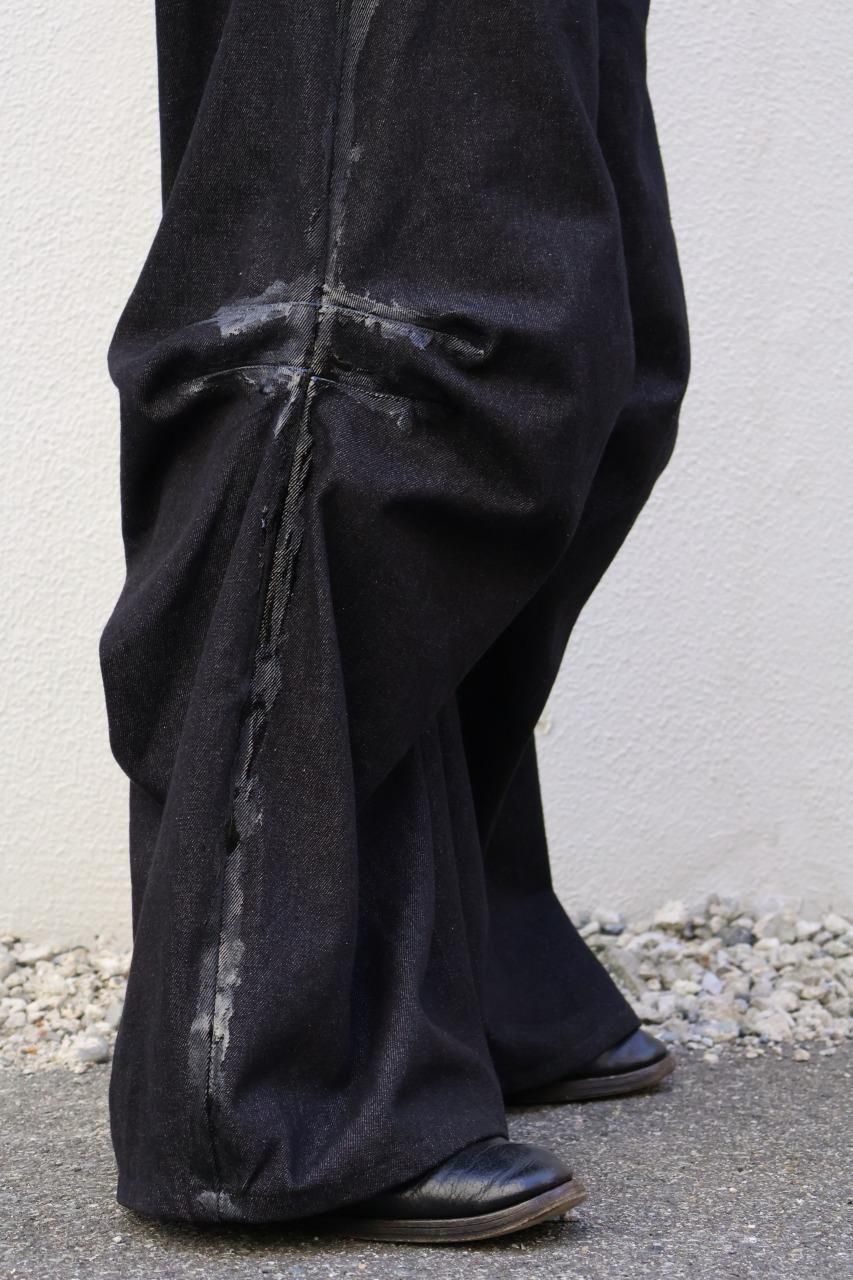 厚手のブラックデニムを使用して、建築的なパターンで構築されたデニムパンツ。