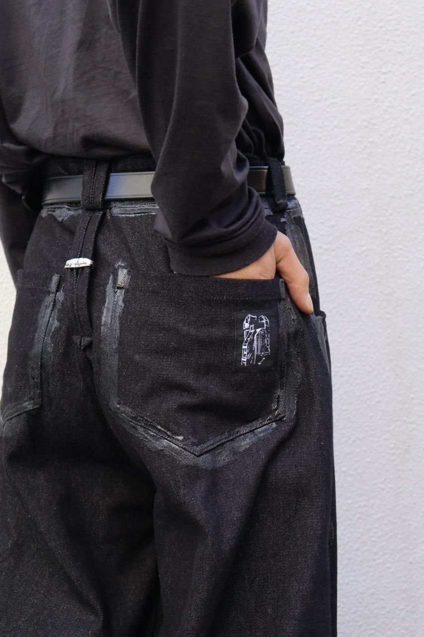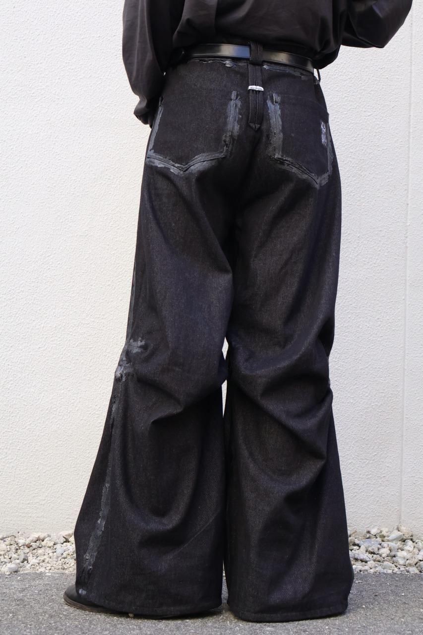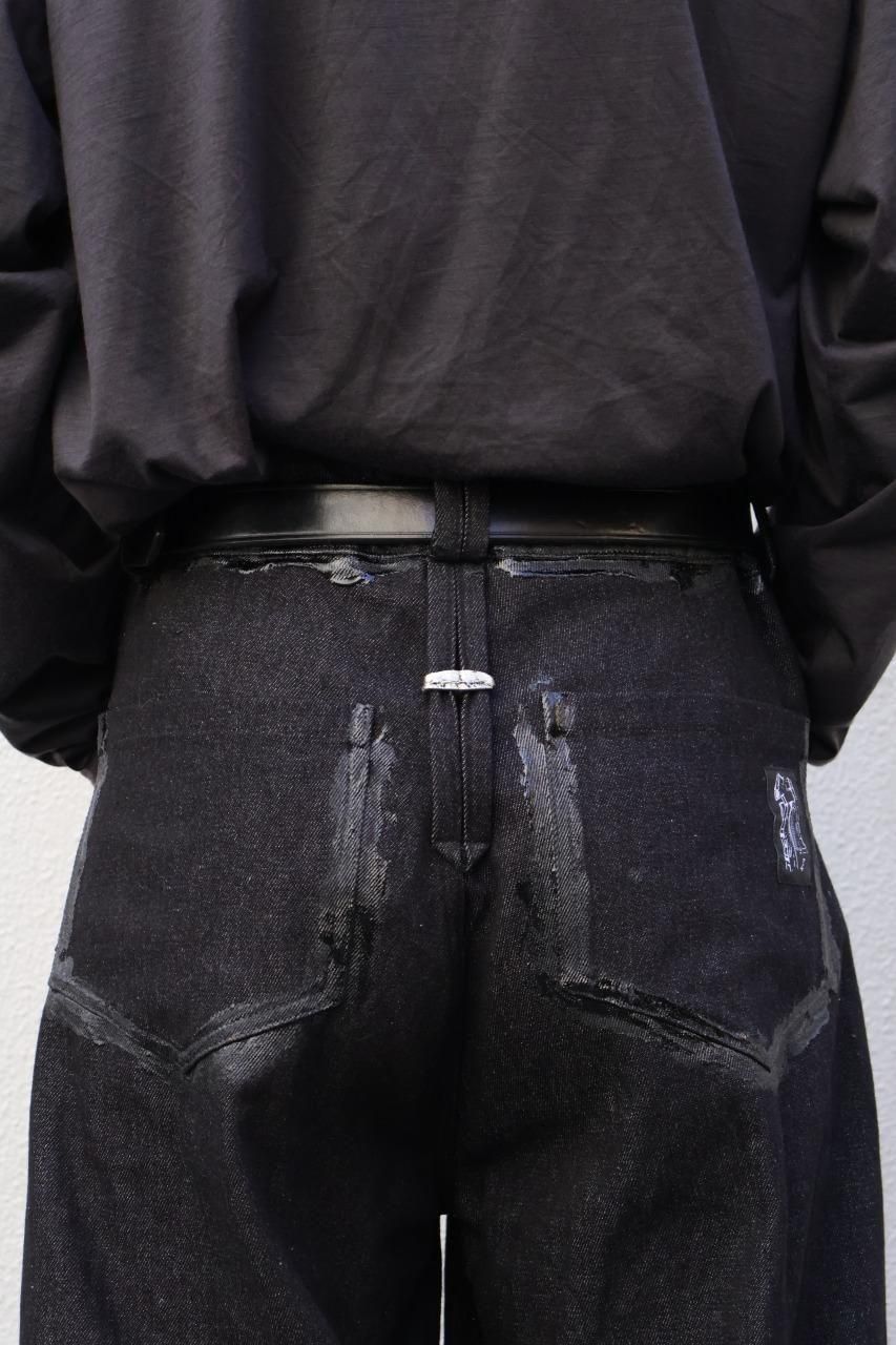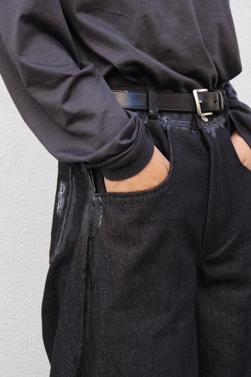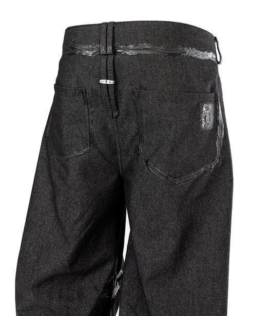 厚手のブラックデニムを使用して、建築的なパターンで構築されたデニムパンツ。