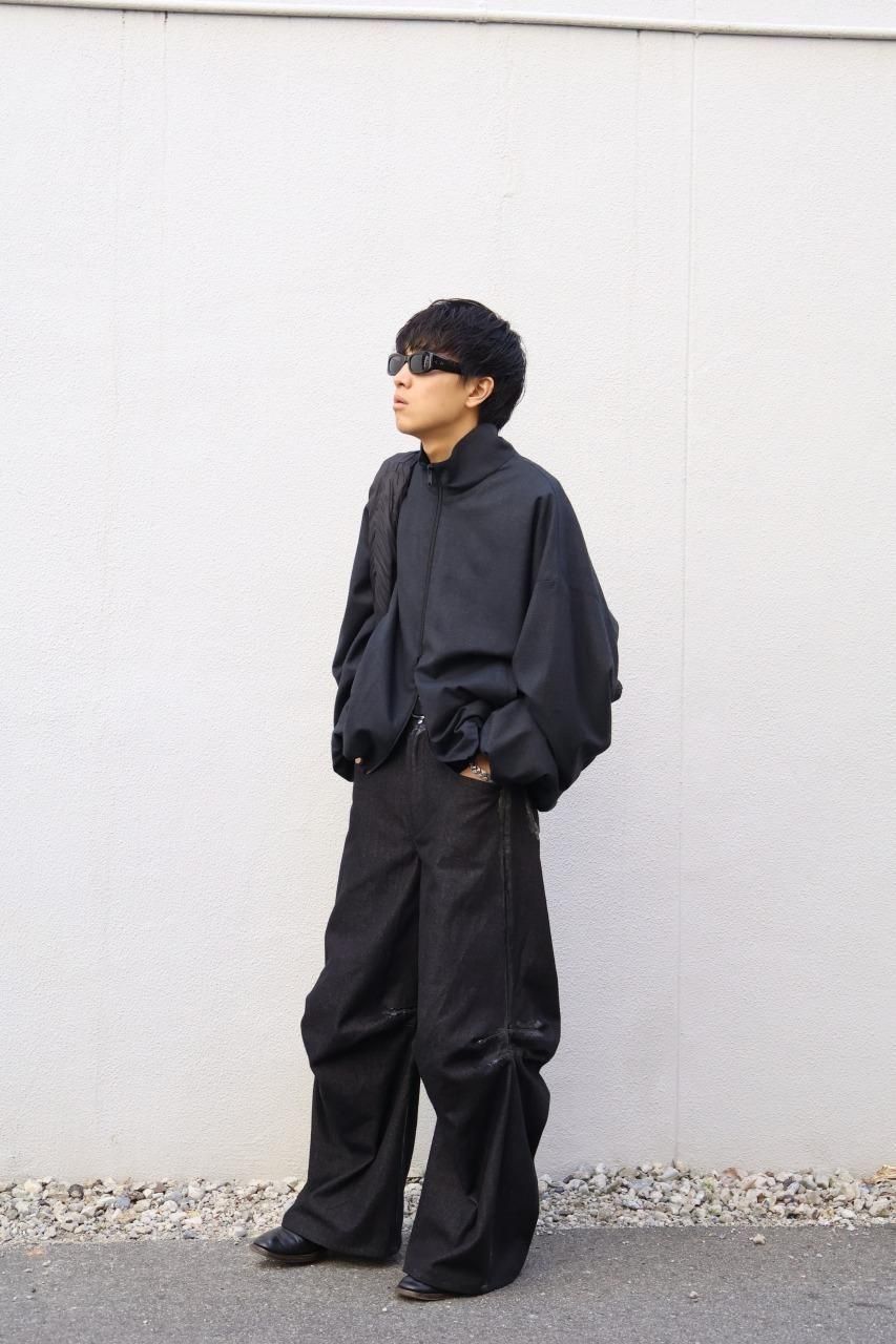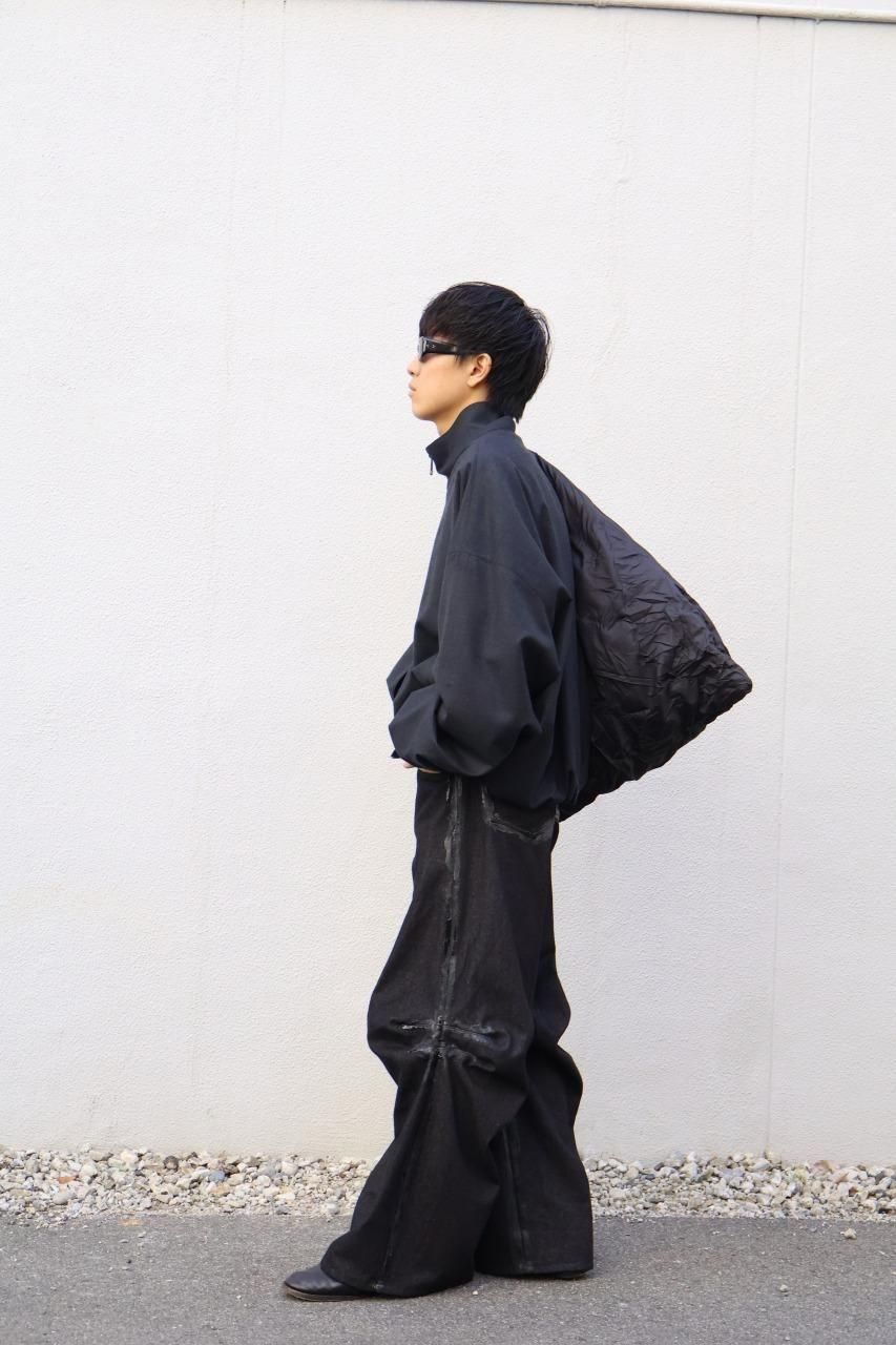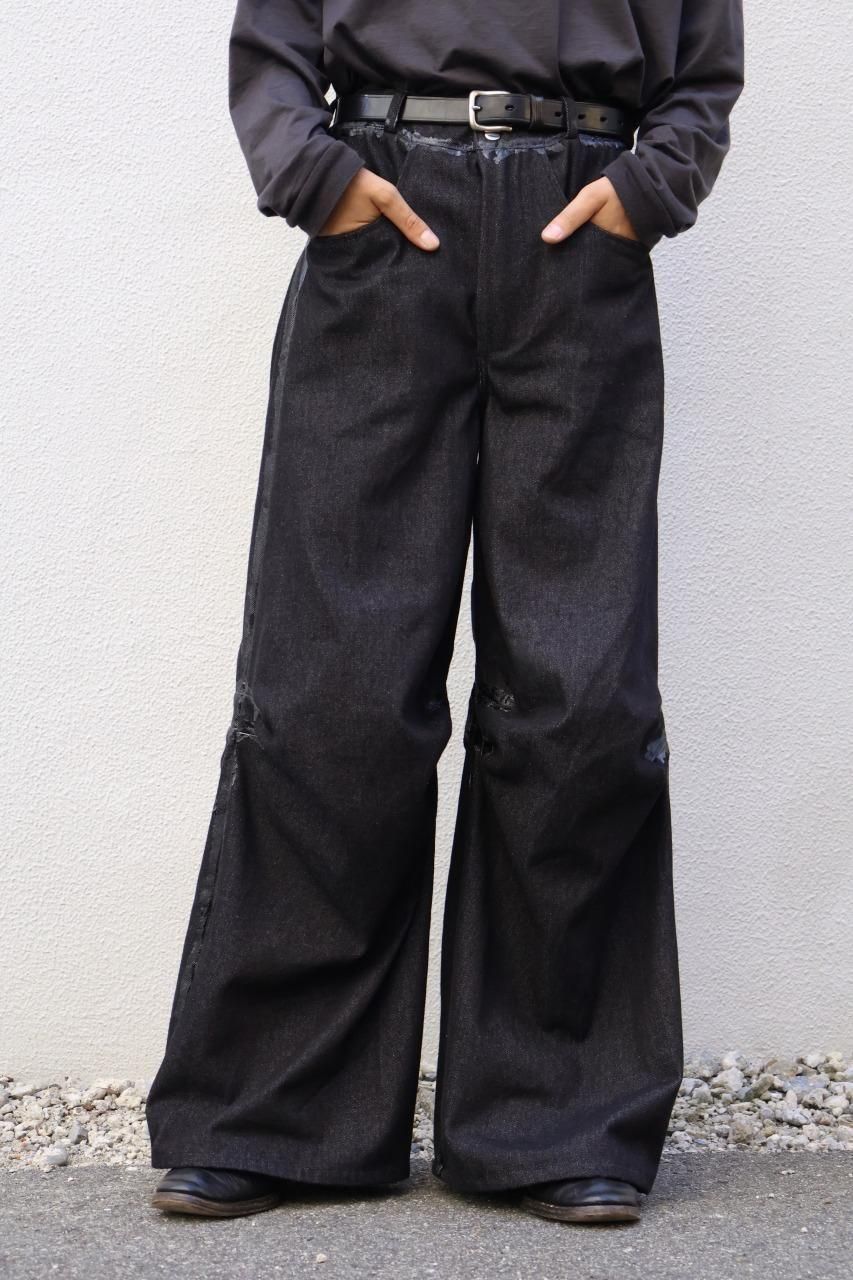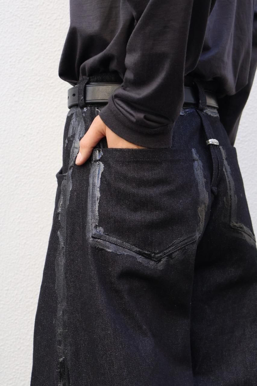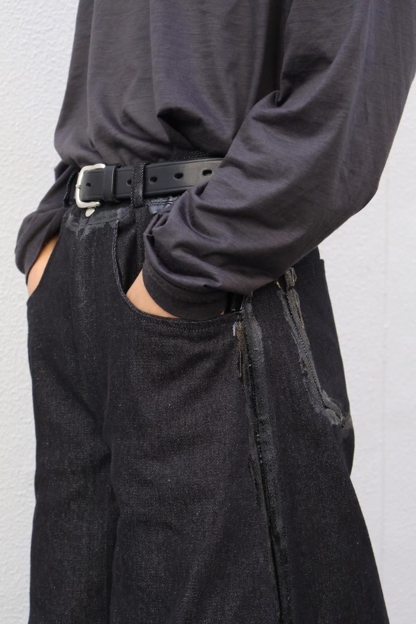 厚手のブラックデニムを使用して、建築的なパターンで構築されたデニムパンツ。