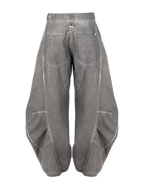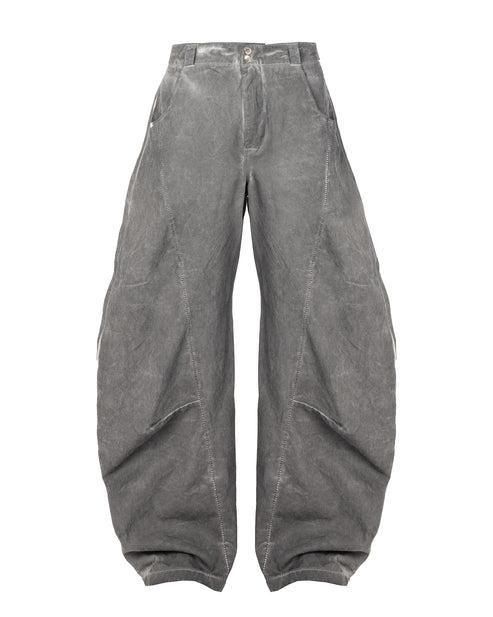 膝部分のダーツによって外側に大きくカーブしたシルエットは、着用すると膝の外側にボリュームが生まれるように。