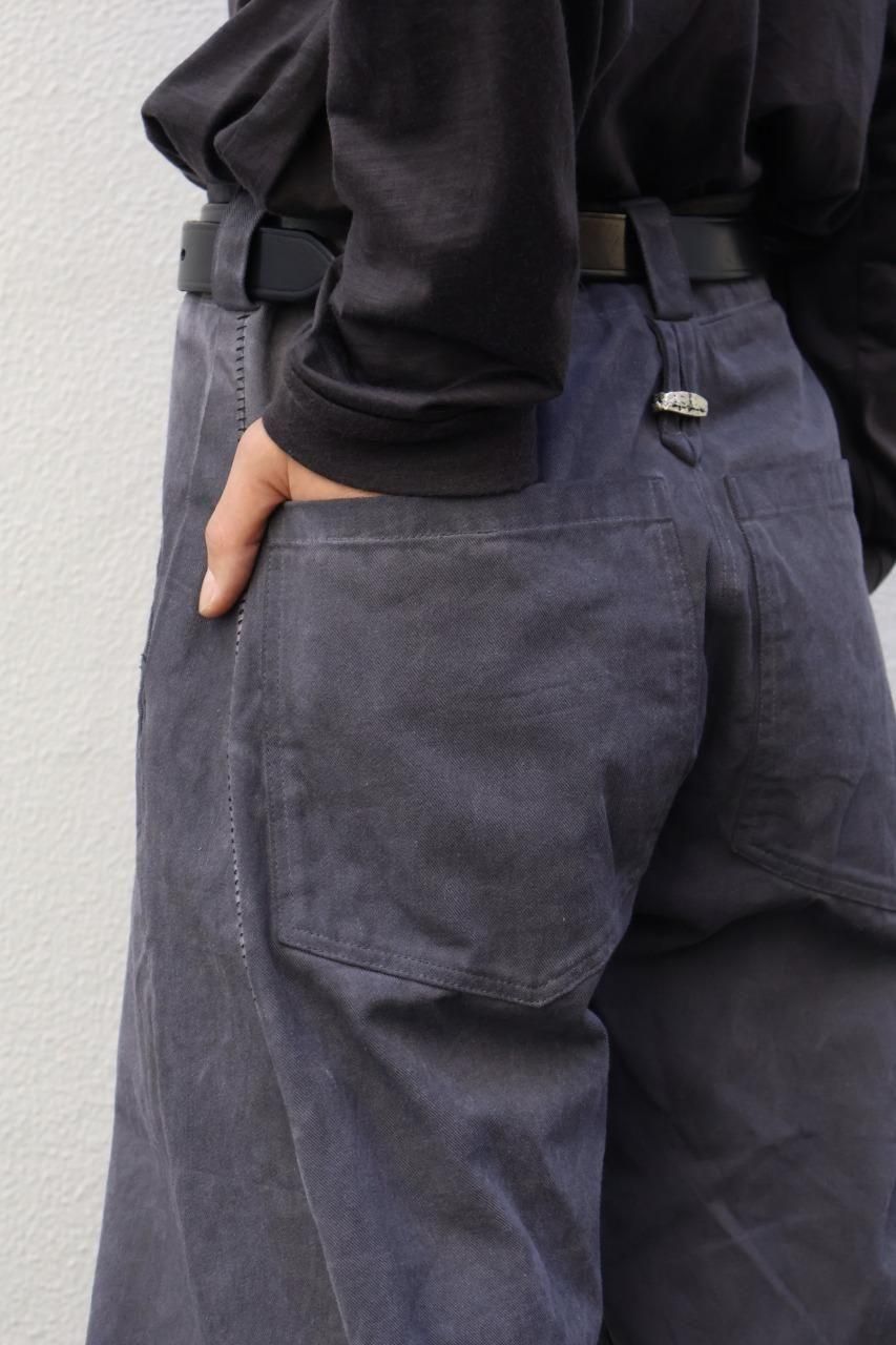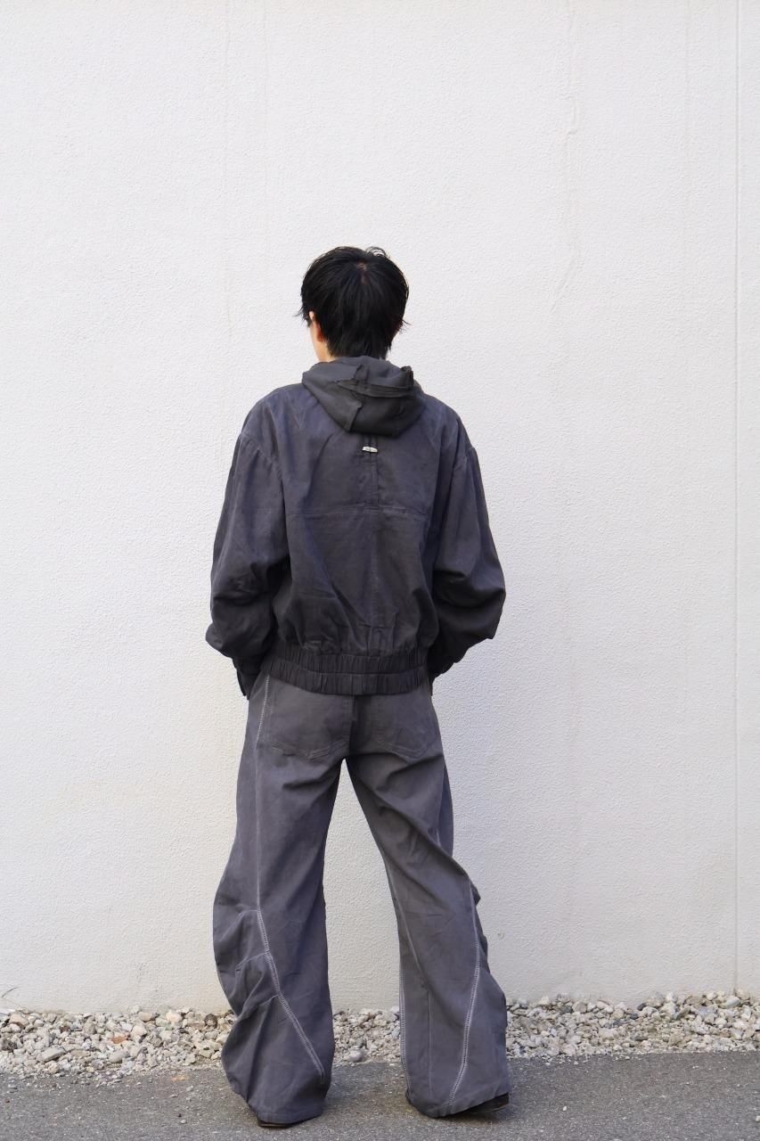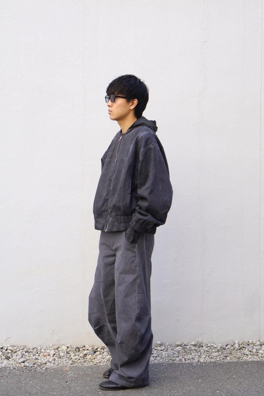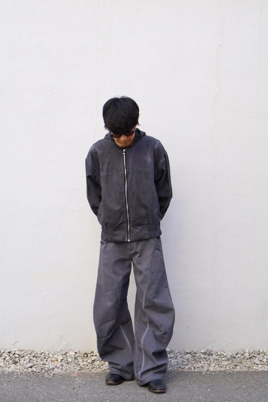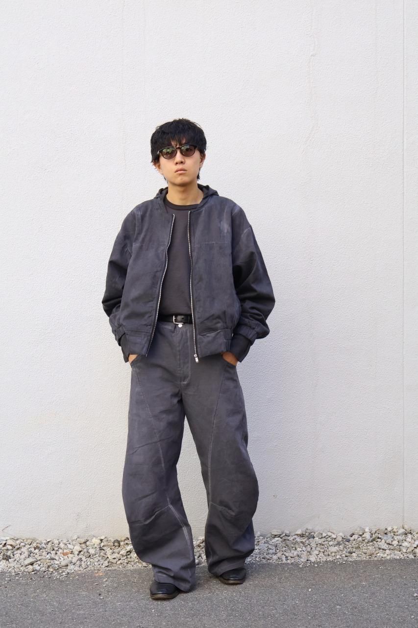 ライトながら頼り甲斐のあるコットンツイルに、後染めとタンブラー加工を施して再現したフェード感で、今季のテーマである「廃れ」を表現しており、シームが剥き出しになっているデザインも「廃れ」を表しております。