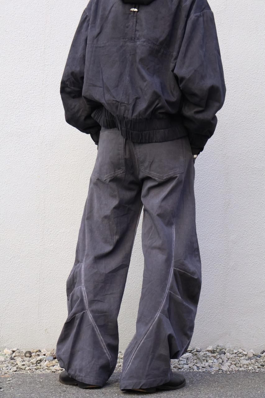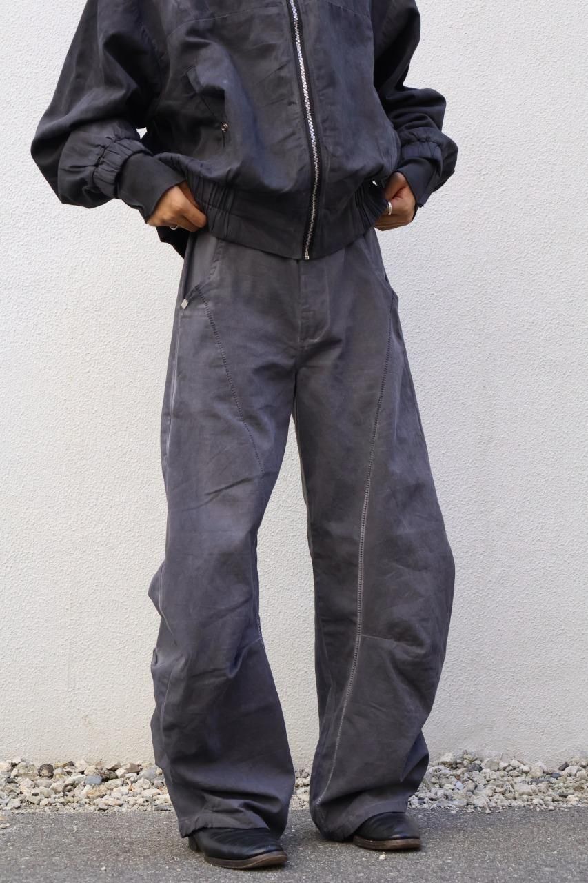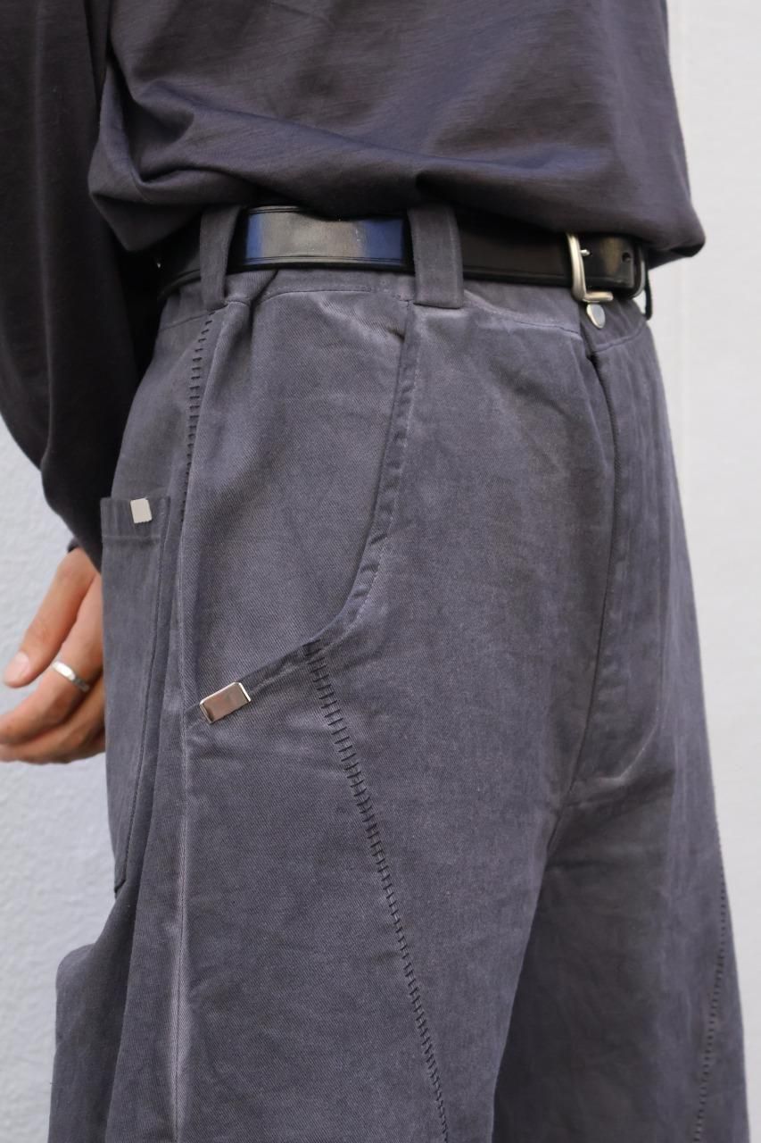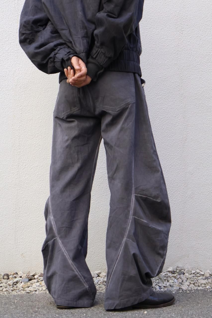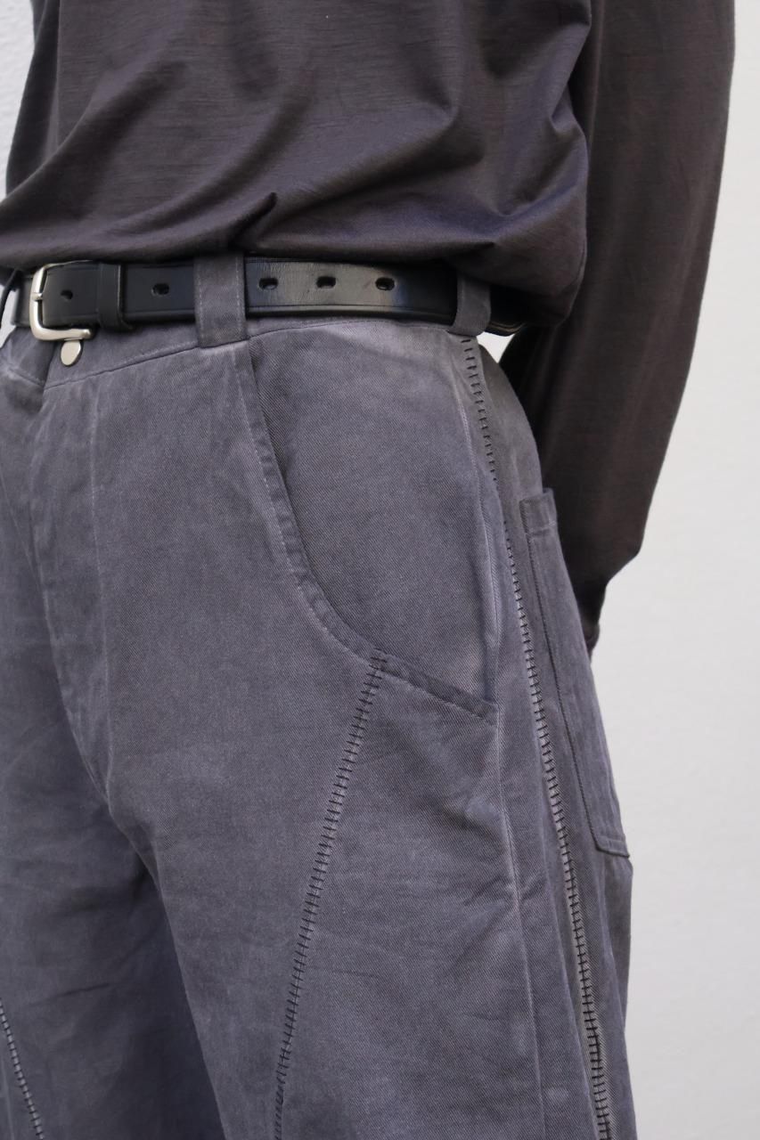 ライトながら頼り甲斐のあるコットンツイルに、後染めとタンブラー加工を施して再現したフェード感で、今季のテーマである「廃れ」を表現しており、シームが剥き出しになっているデザインも「廃れ」を表しております。