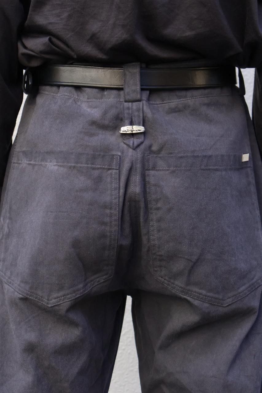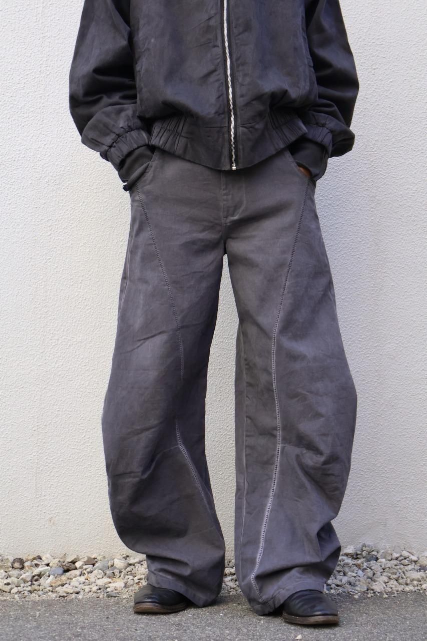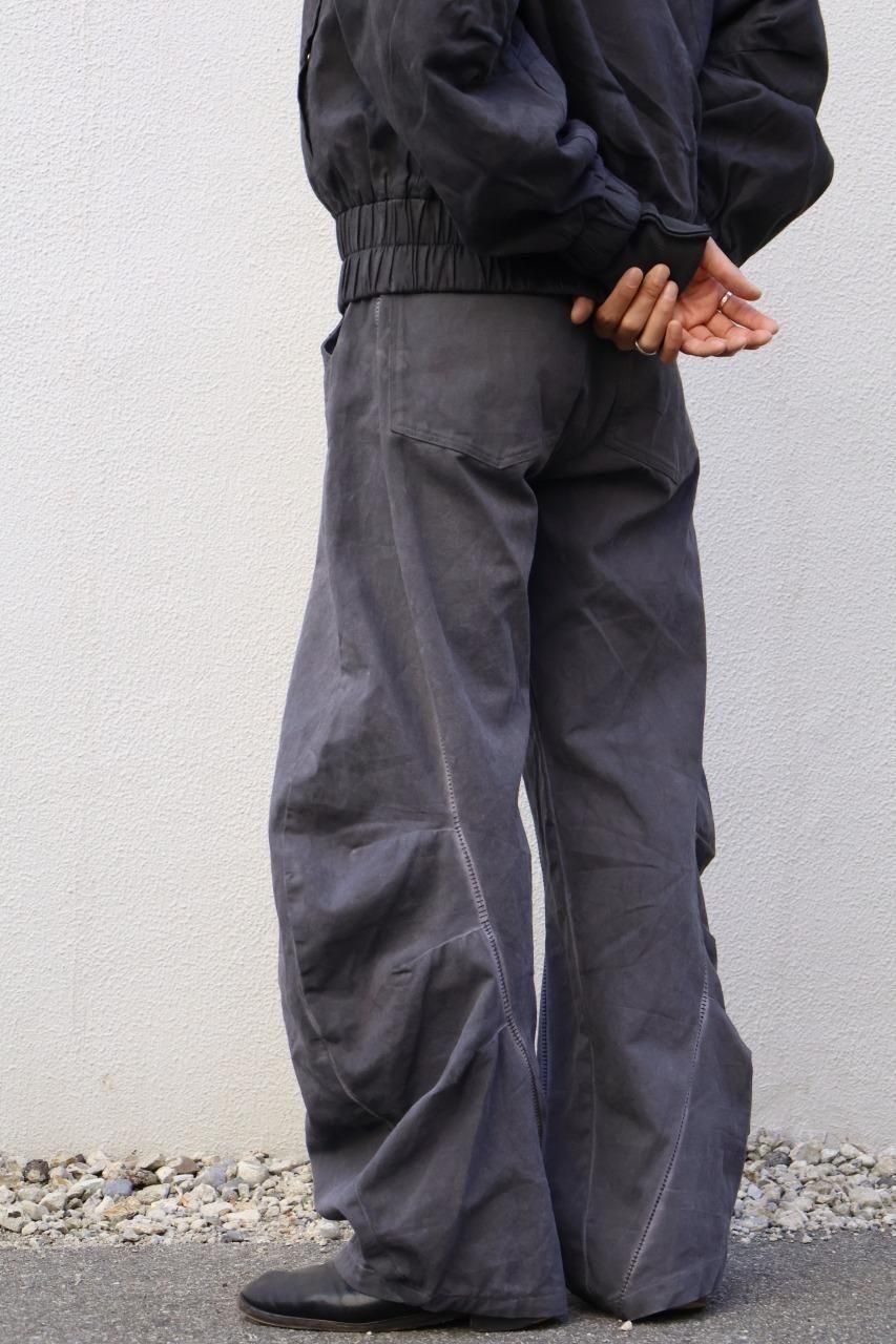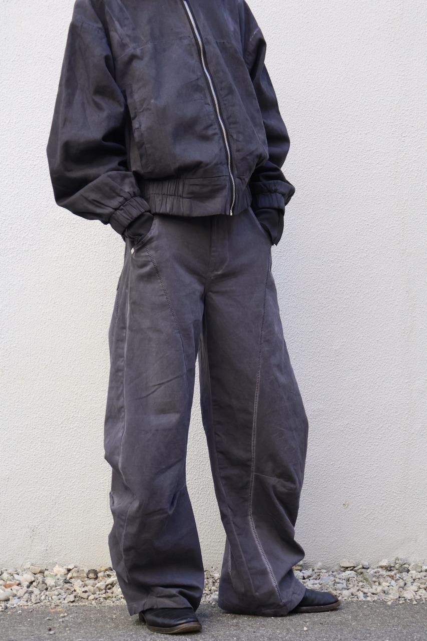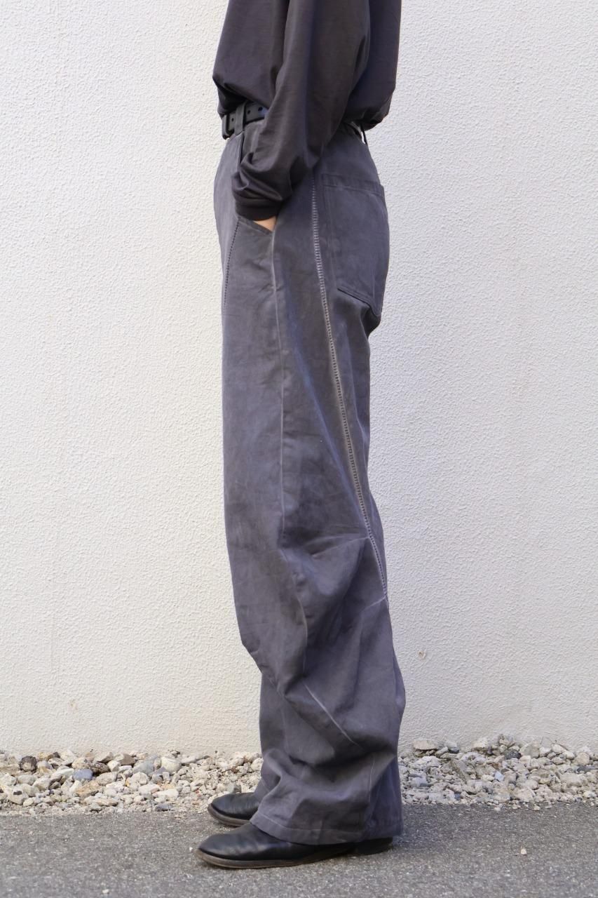 ライトながら頼り甲斐のあるコットンツイルに、後染めとタンブラー加工を施して再現したフェード感で、今季のテーマである「廃れ」を表現しており、シームが剥き出しになっているデザインも「廃れ」を表しております。