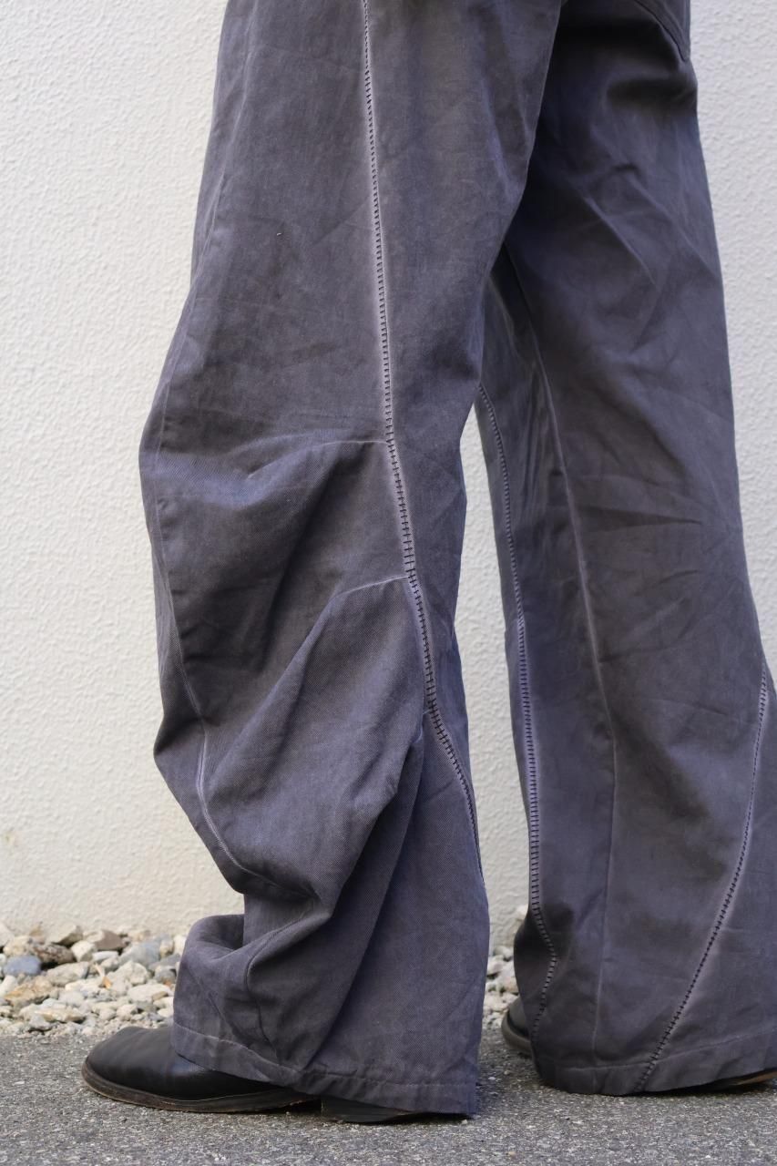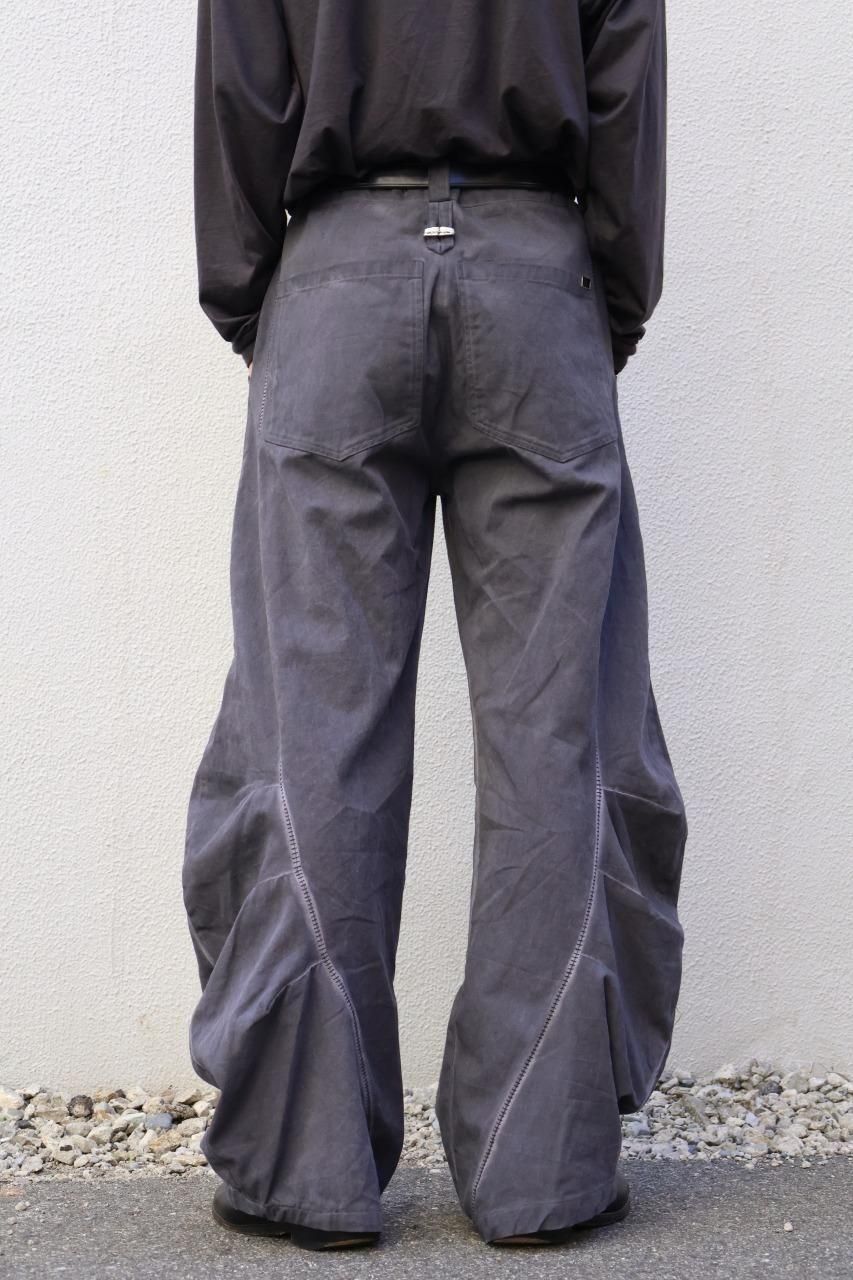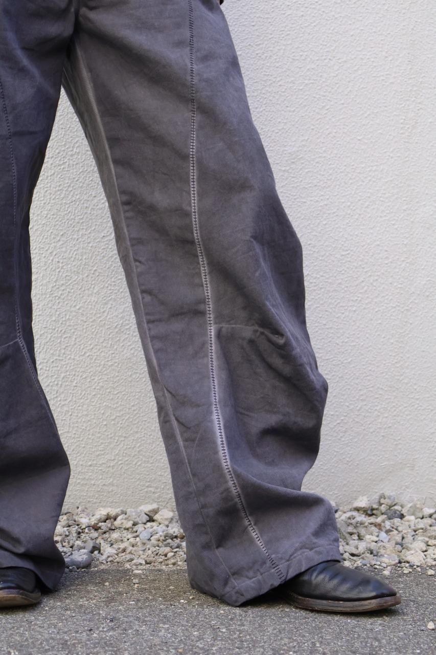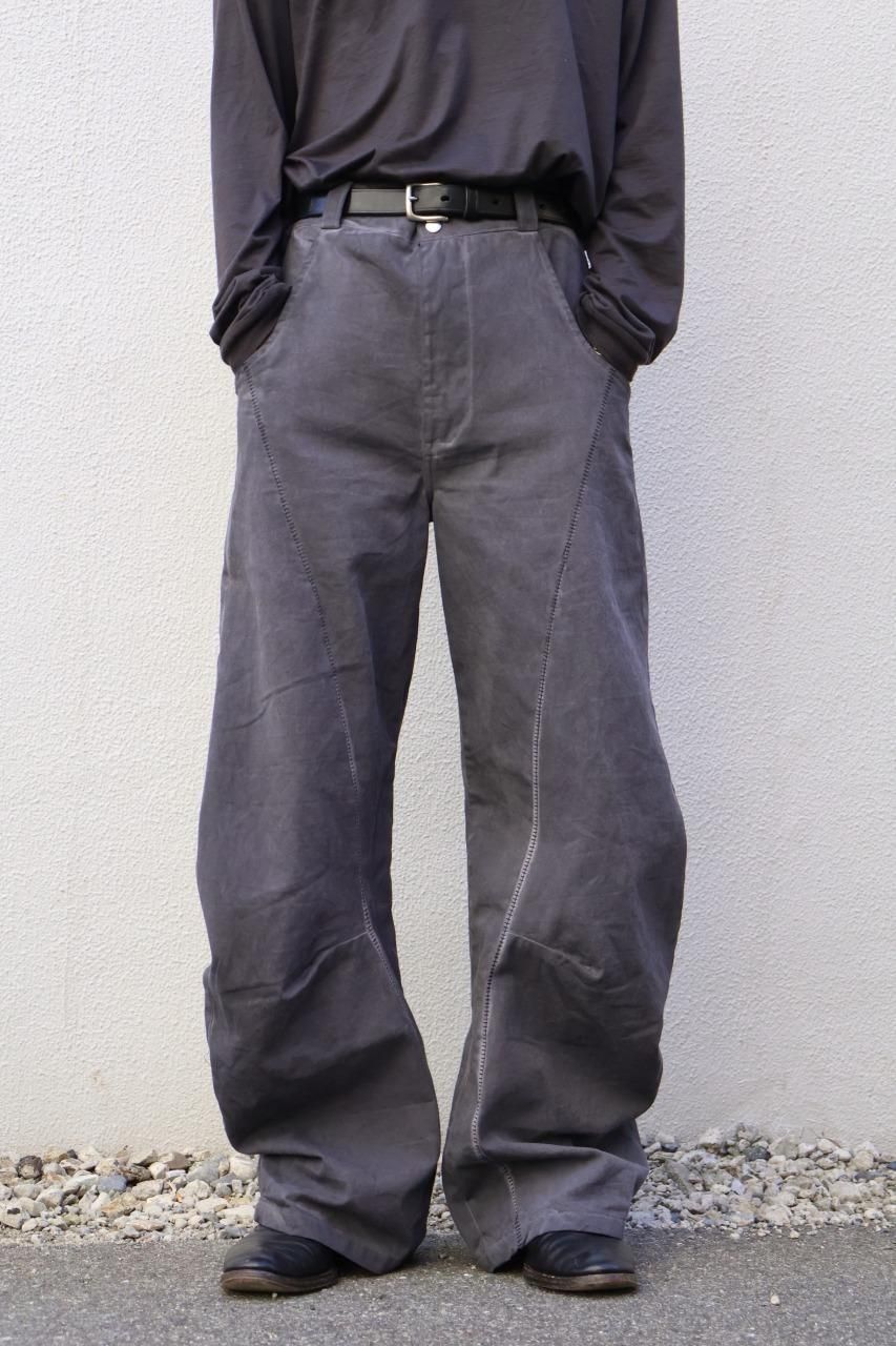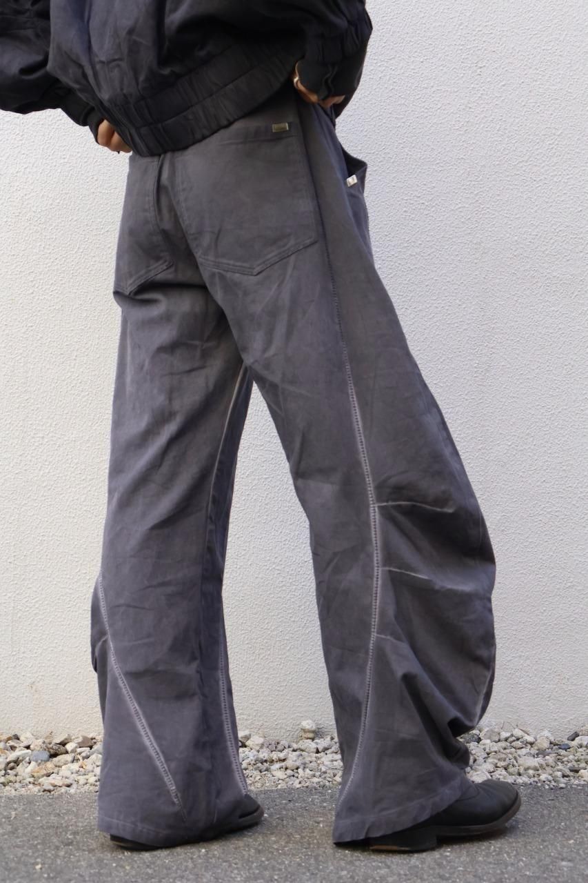 ライトながら頼り甲斐のあるコットンツイルに、後染めとタンブラー加工を施して再現したフェード感で、今季のテーマである「廃れ」を表現しており、シームが剥き出しになっているデザインも「廃れ」を表しております。