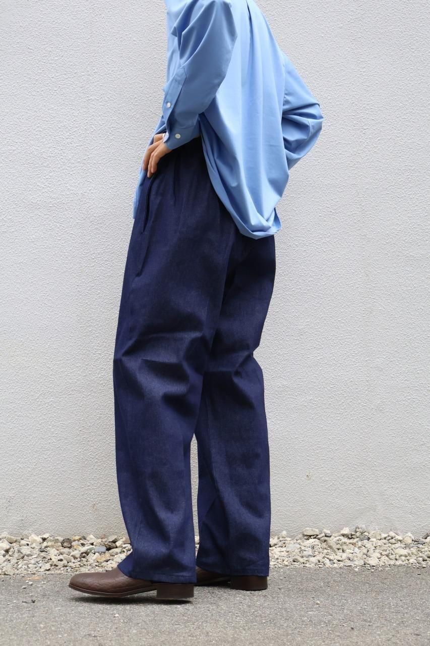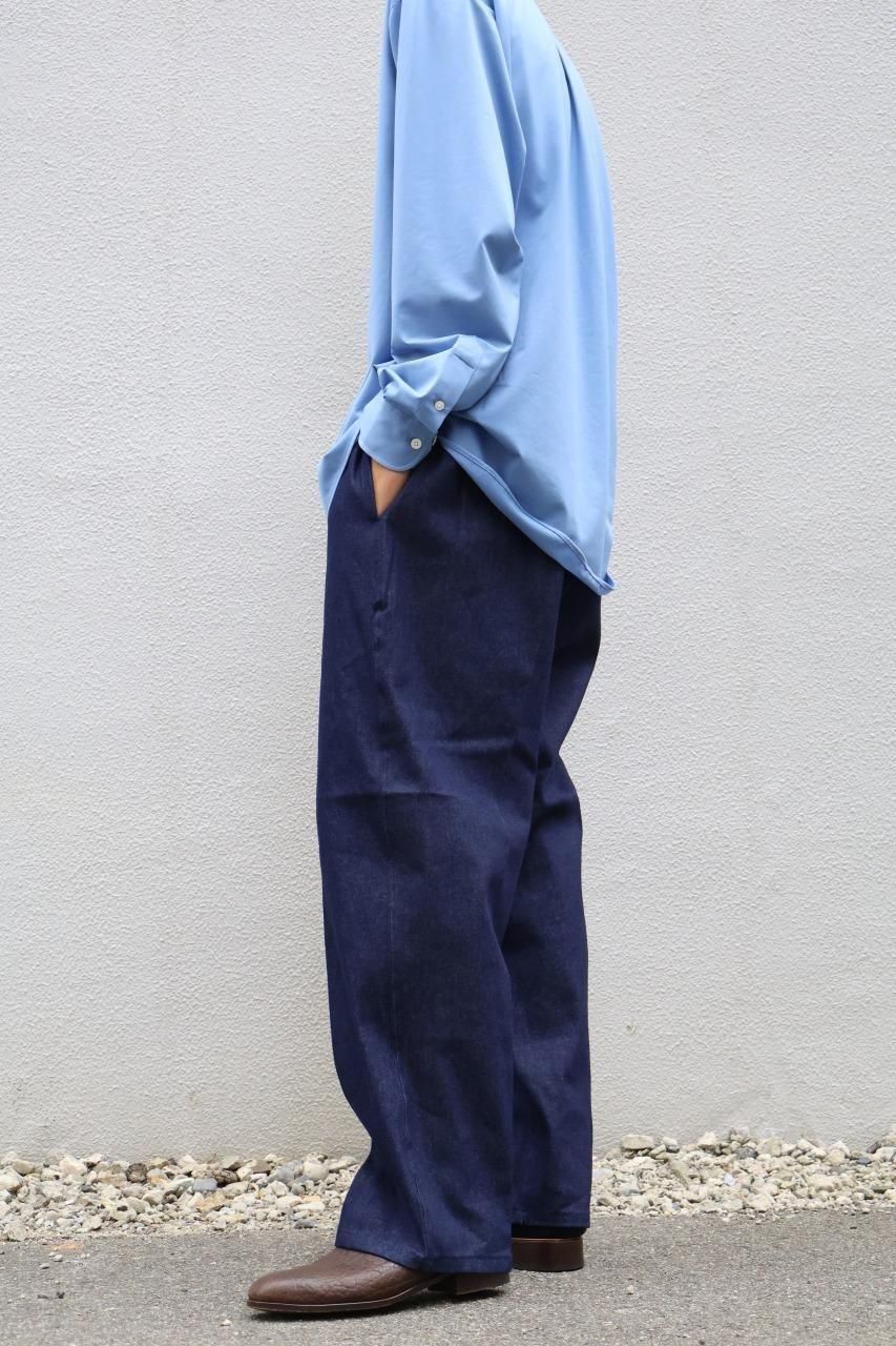 デザイナー自身が自身の日常を探求してみた結果、仕事中も休日も、ハードな服装はほとんどせず、ラフなスタイルが多いことがわかったことから制作に至ったイージー仕様のデニムパンツです。