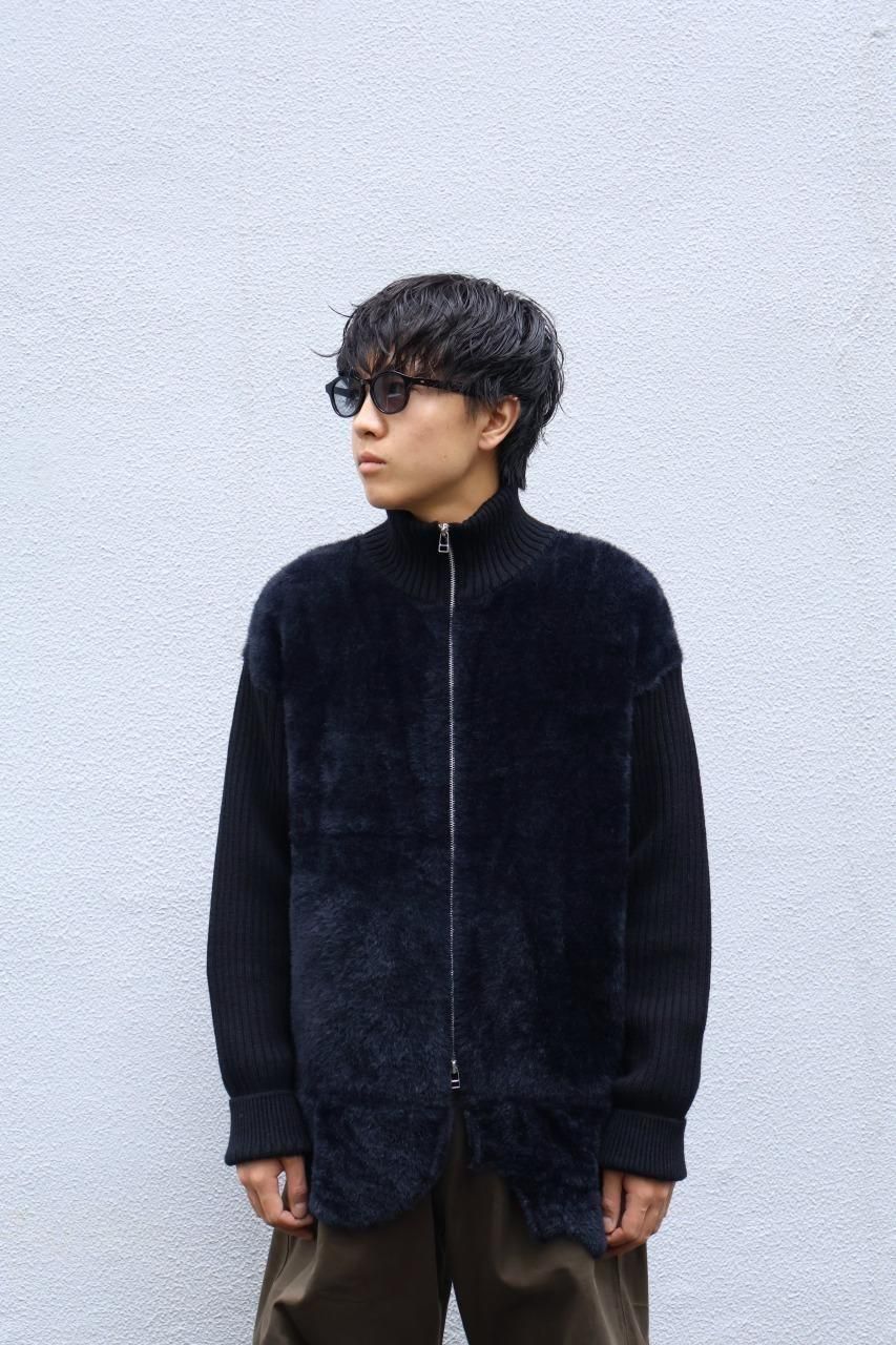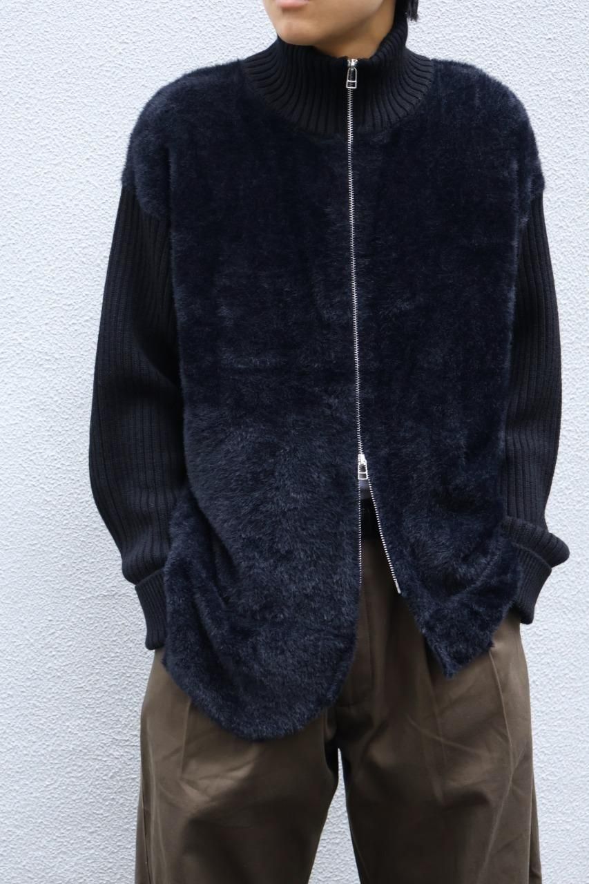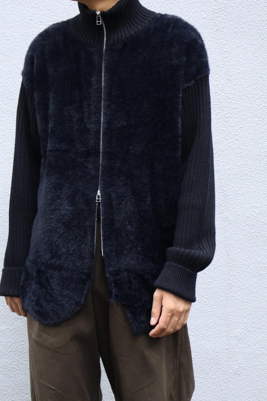 身頃はファー、袖はウールリブになっているジップジャケット。