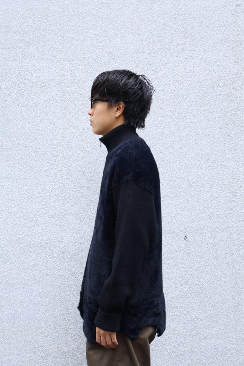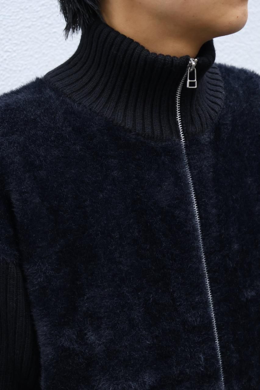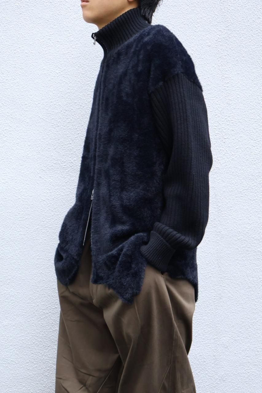 身頃はファー、袖はウールリブになっているジップジャケット。