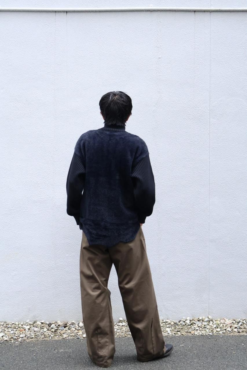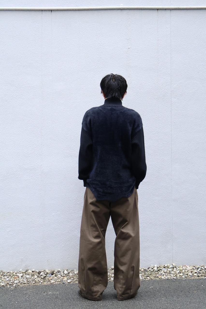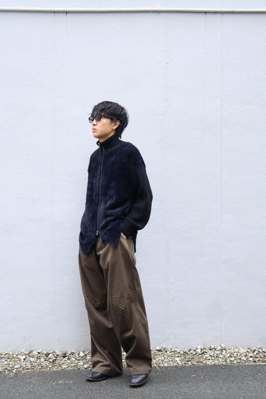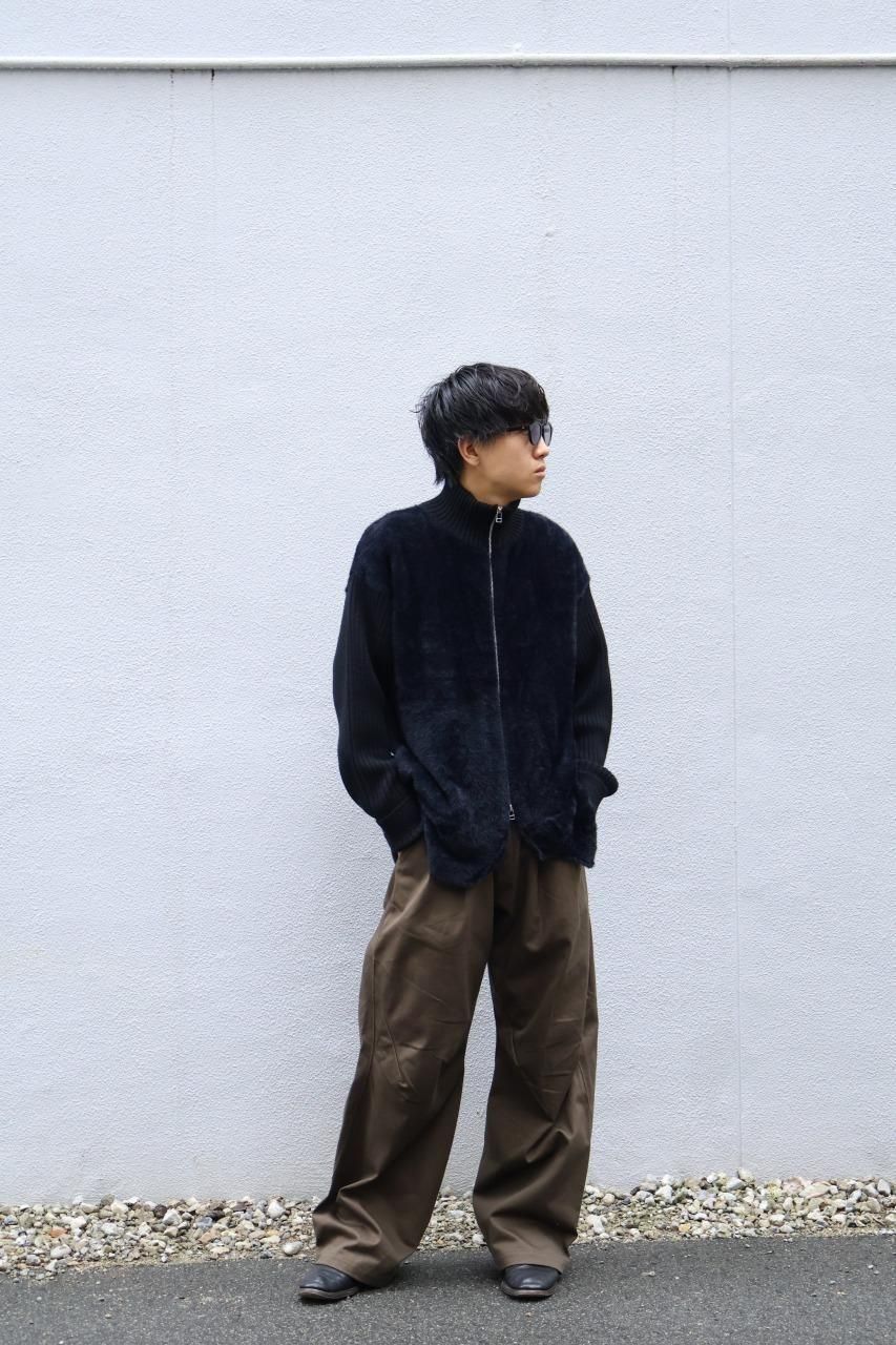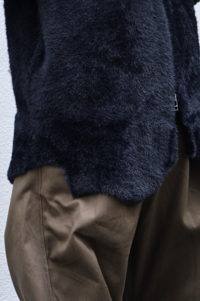 原皮がインスパイア元になっているジャケットのため、裾のデザインは手編みで制作されており、その後身頃にドッキングしております。
