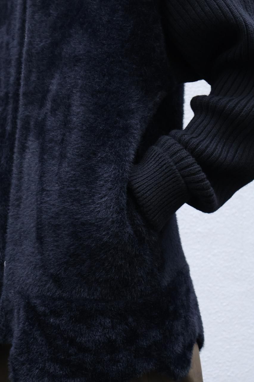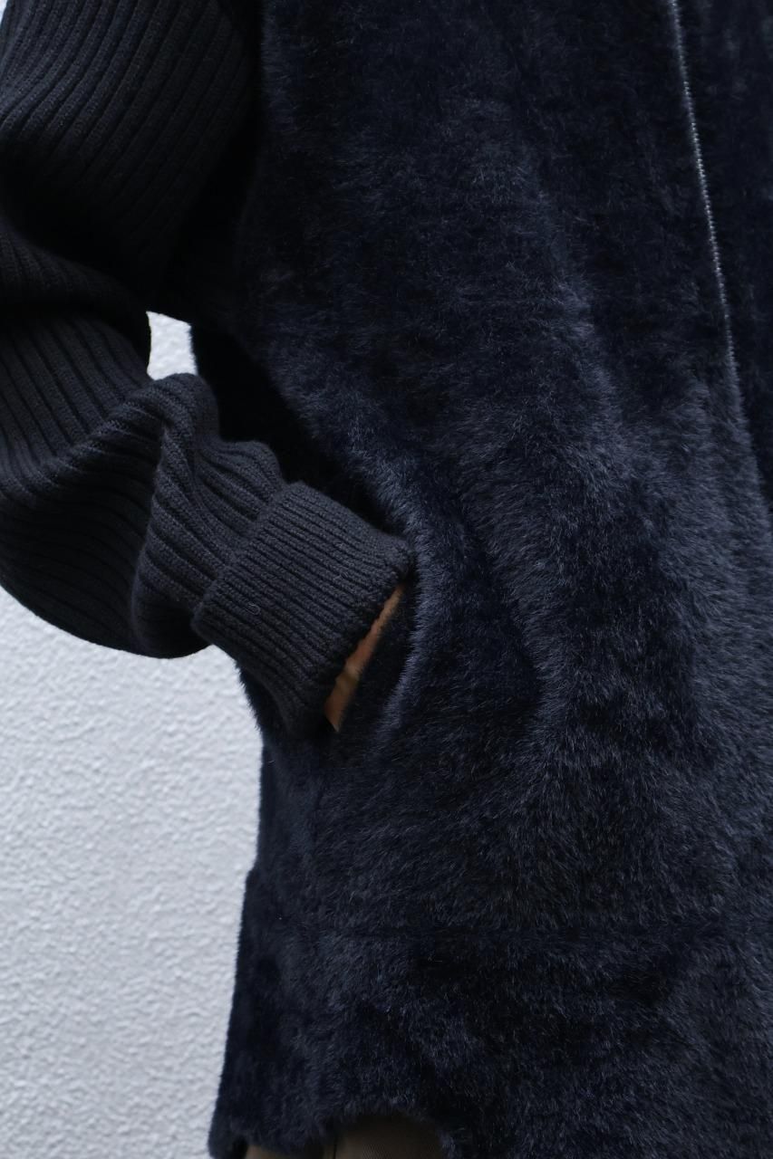 身頃のファーはとても肌触りが柔らかで、ニットジャケット特有の重みも感じないので、軽い羽織りものとしてもお勧め。