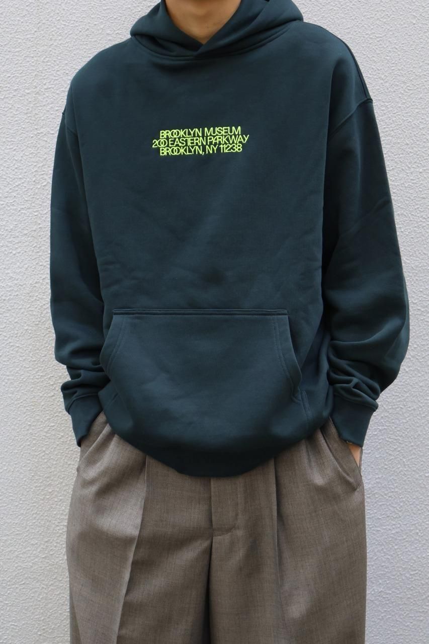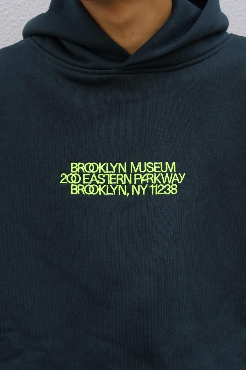 裏起毛で程よい厚みがあるコットンポリエステルボディを使用した、Brooklyn Museumオリジナルフーディー。