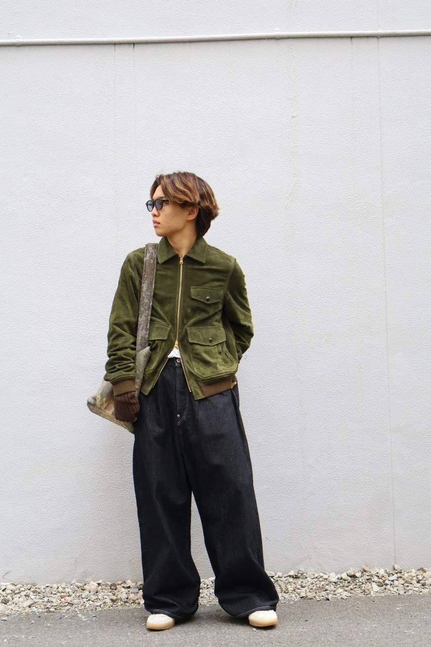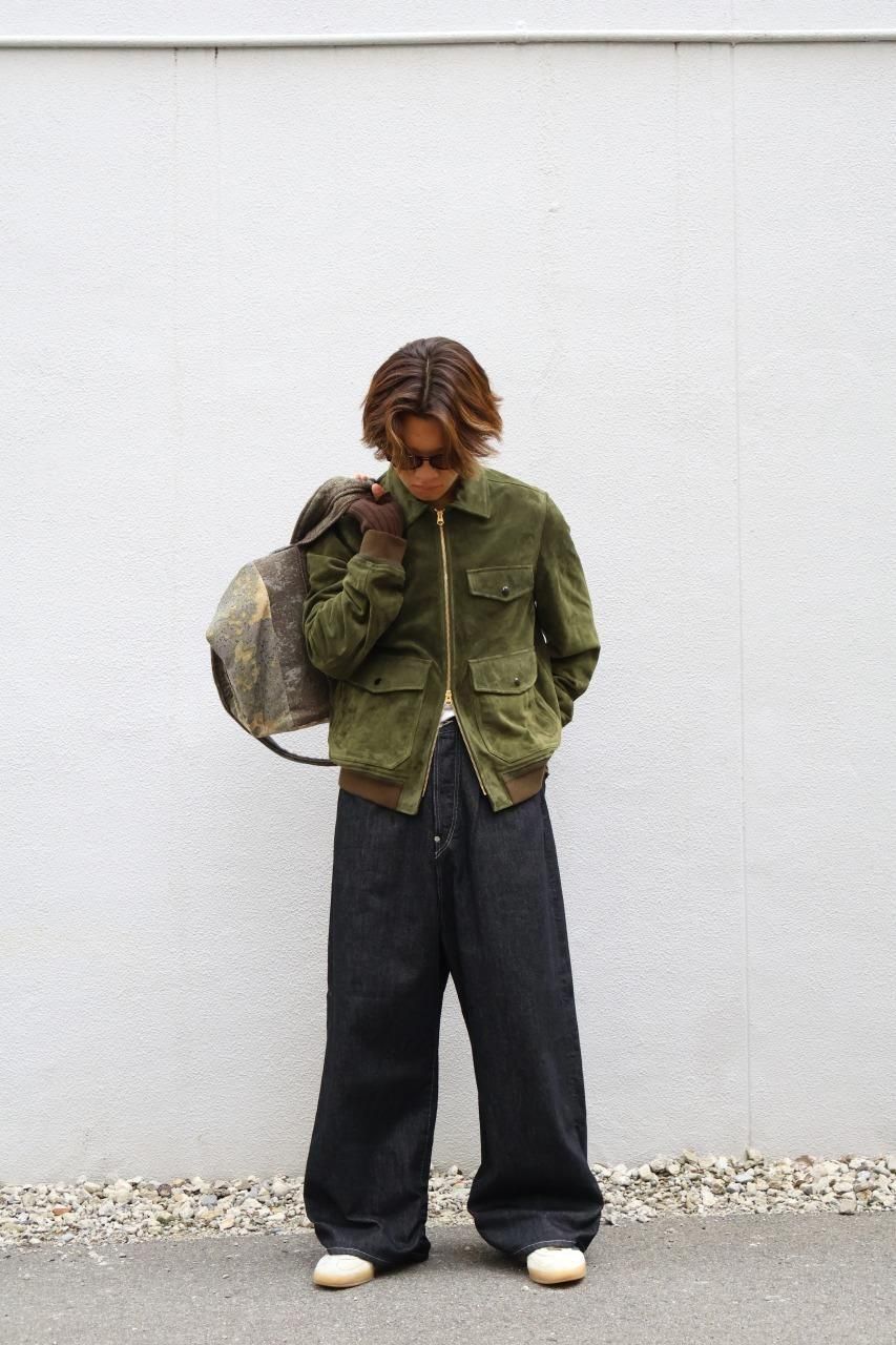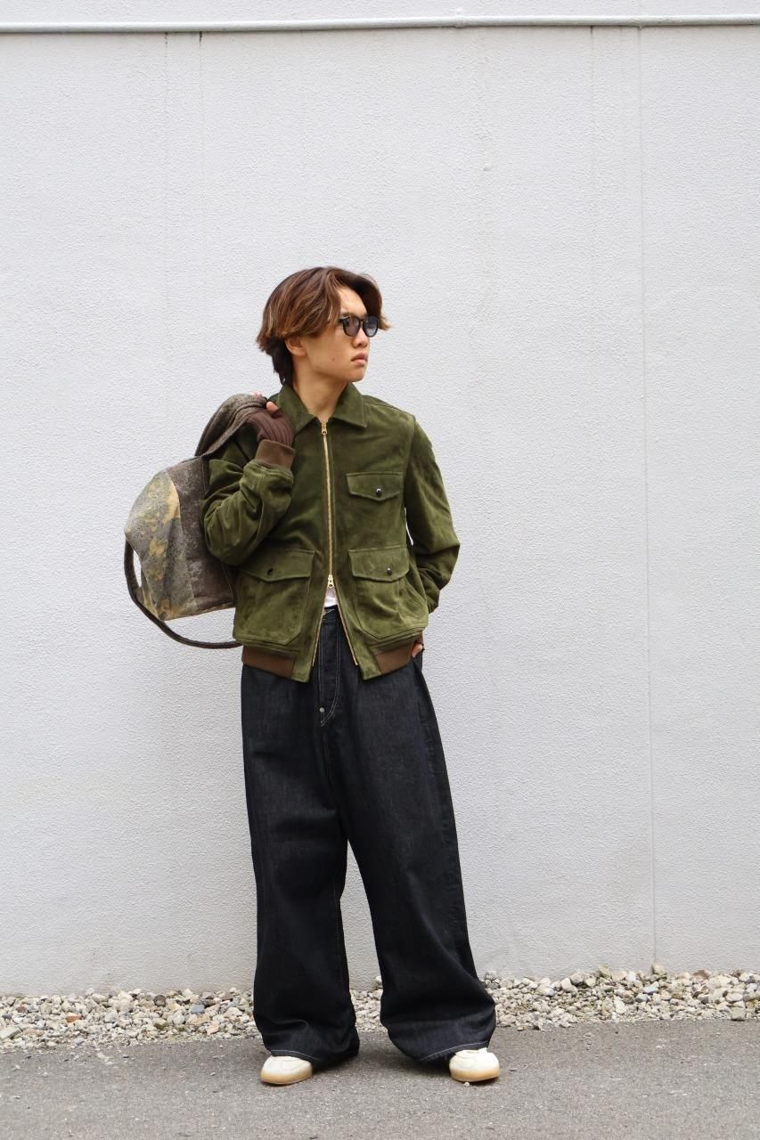 TOPS : Drake's - Heavyweight Suede A-2 Bomber Jacket "Green" -