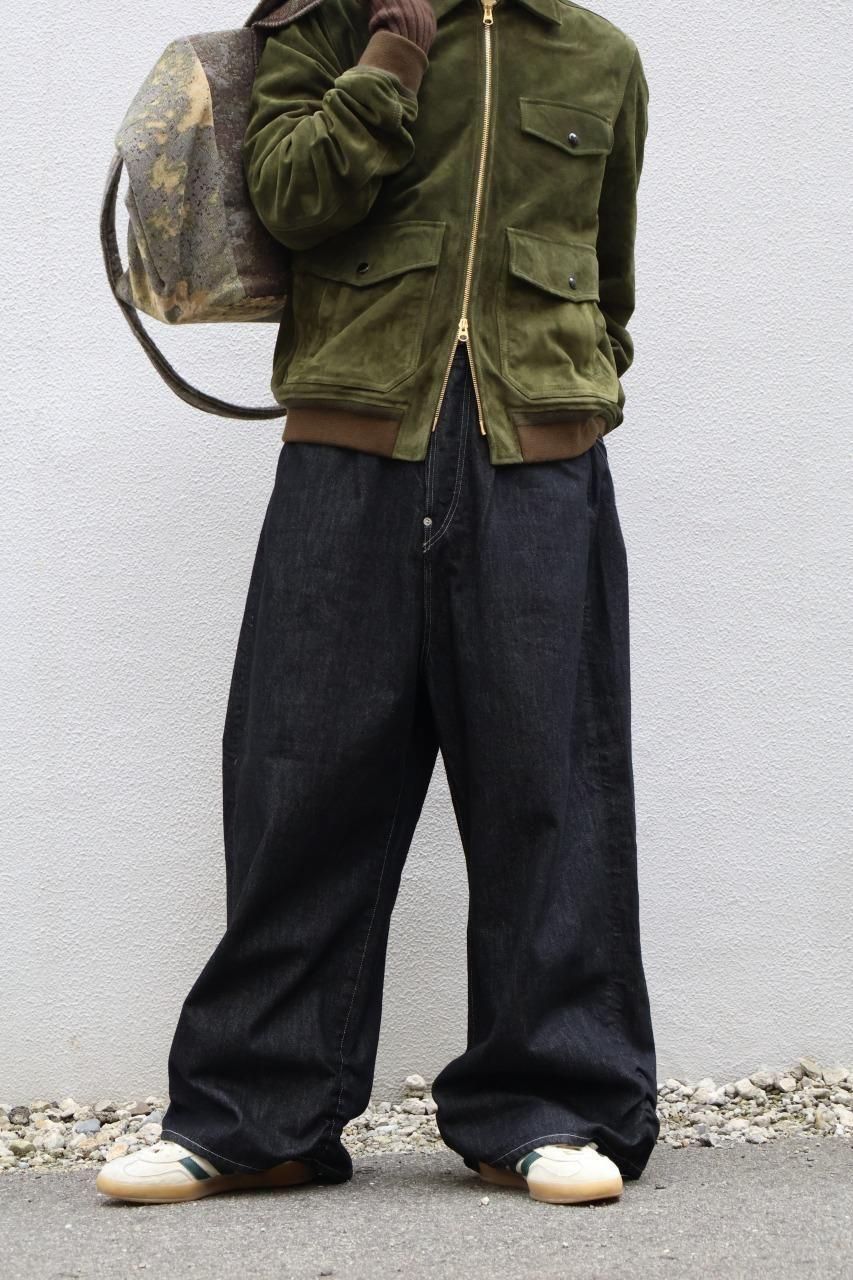 超超ワイドや、5超など職人たちの中ではパンツの太さでキャラクター性を表現していたことからシルエット調整をした新型デニムを製作いたしました。