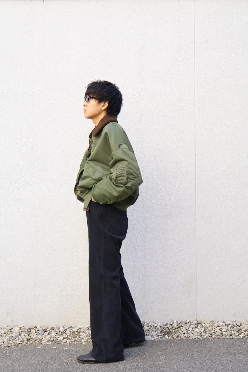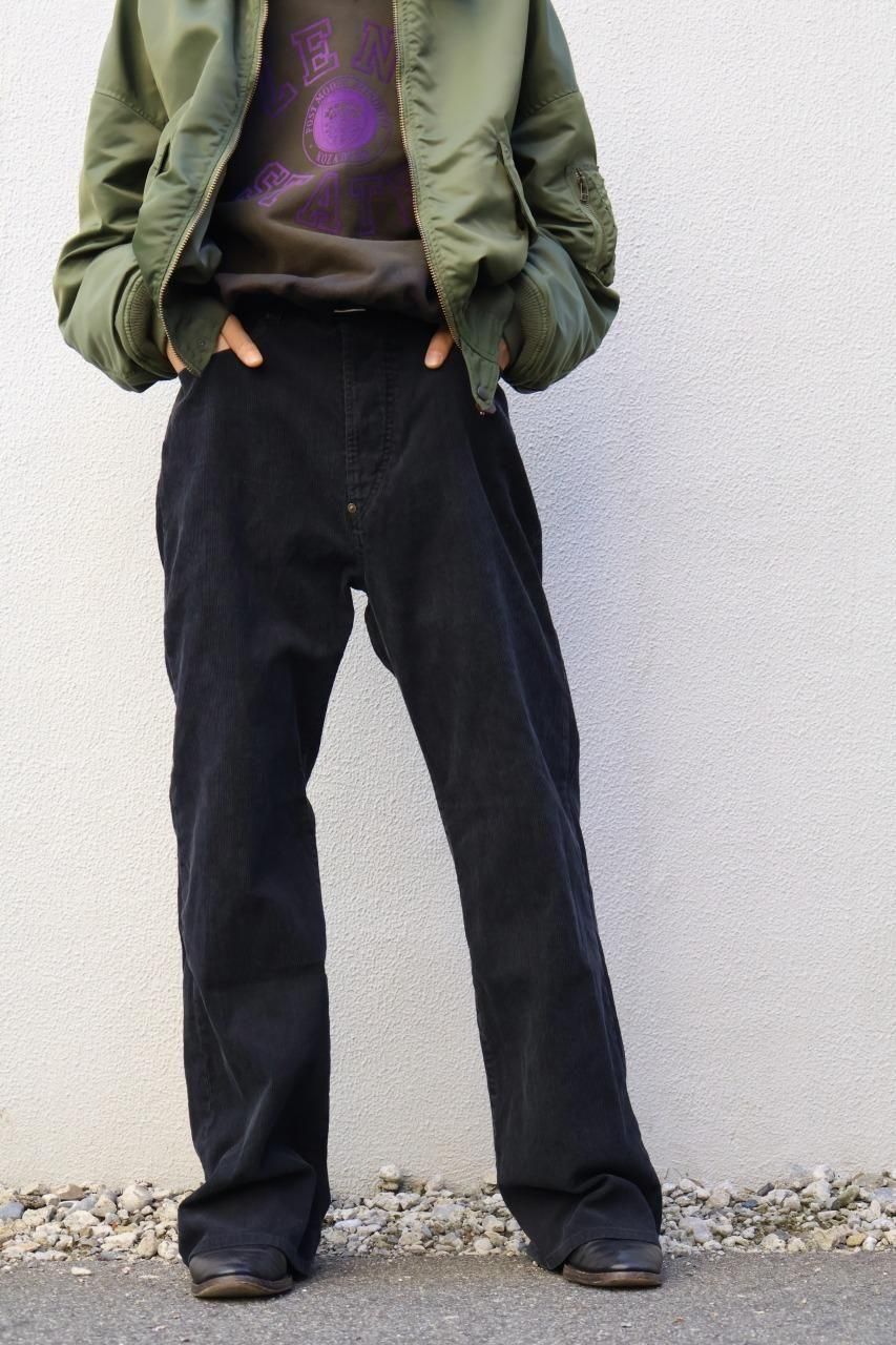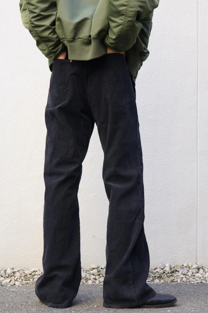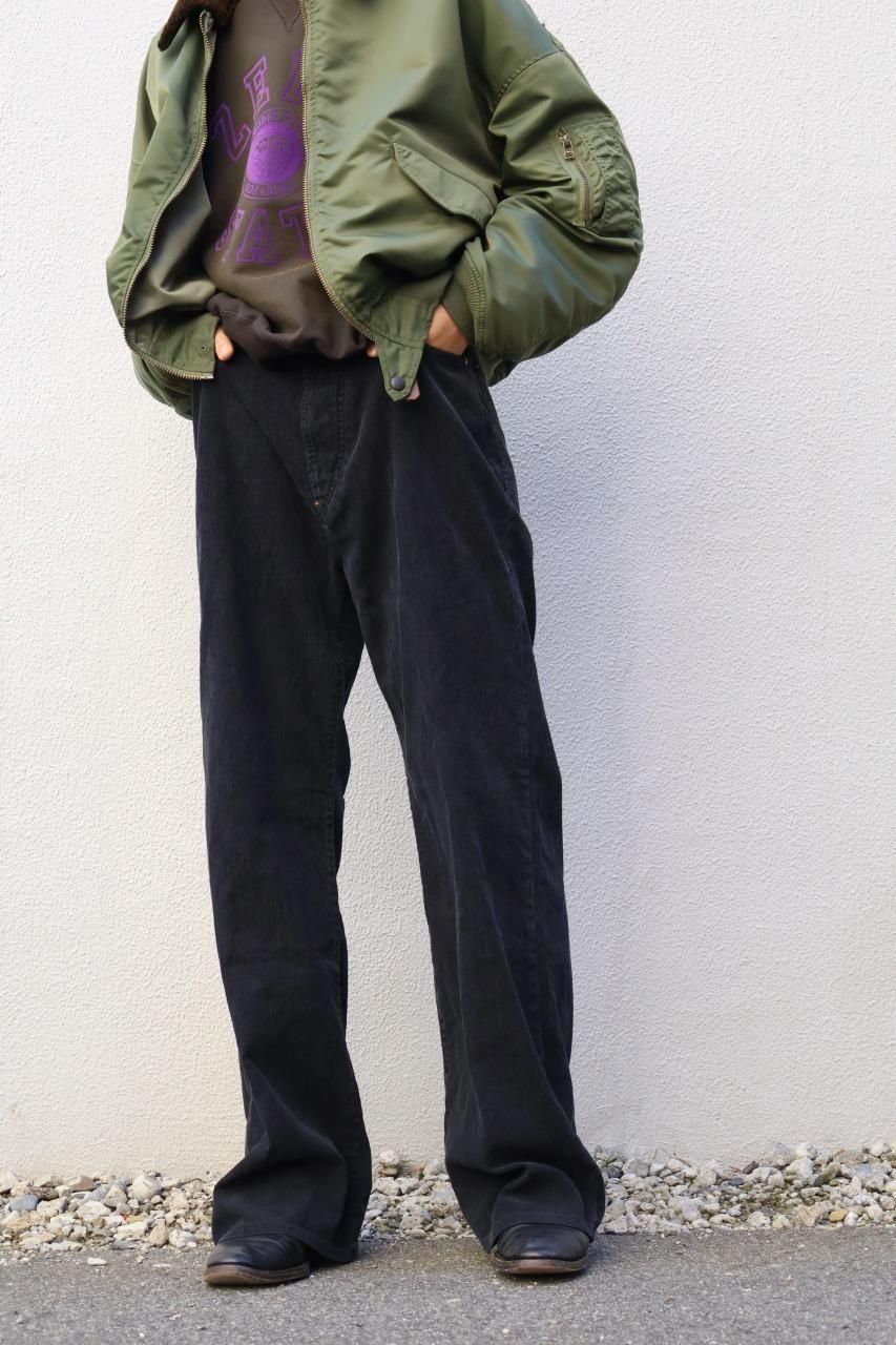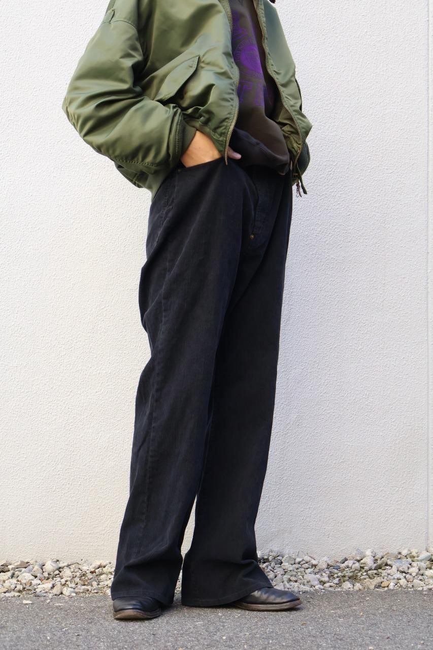 スラブ糸を使用したコーデュロイに硫化染めを施し、独特の色合いとムラ感を表現。さらに製品加工でストーンバイオを施すことで、程よくこなれた風合いに仕上げている。