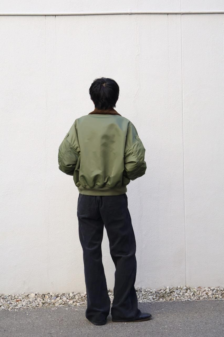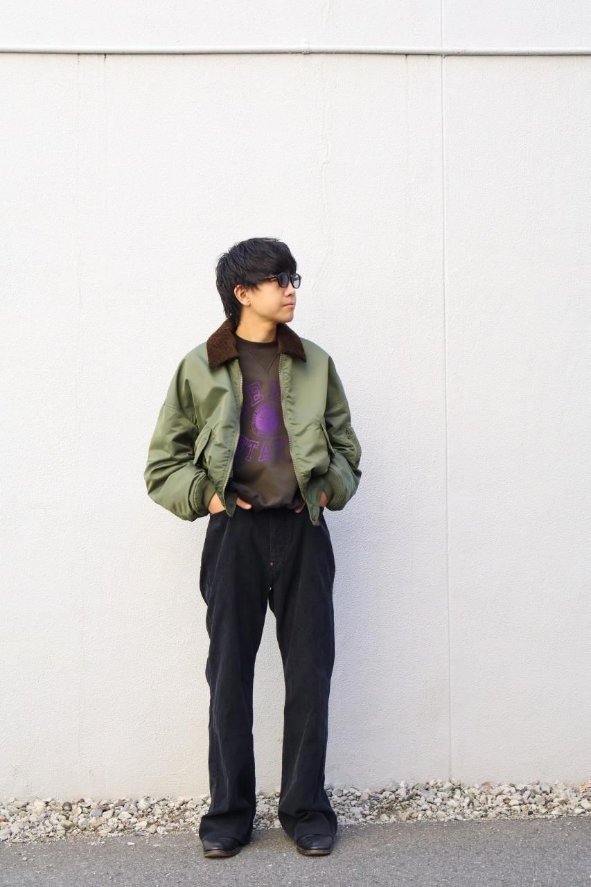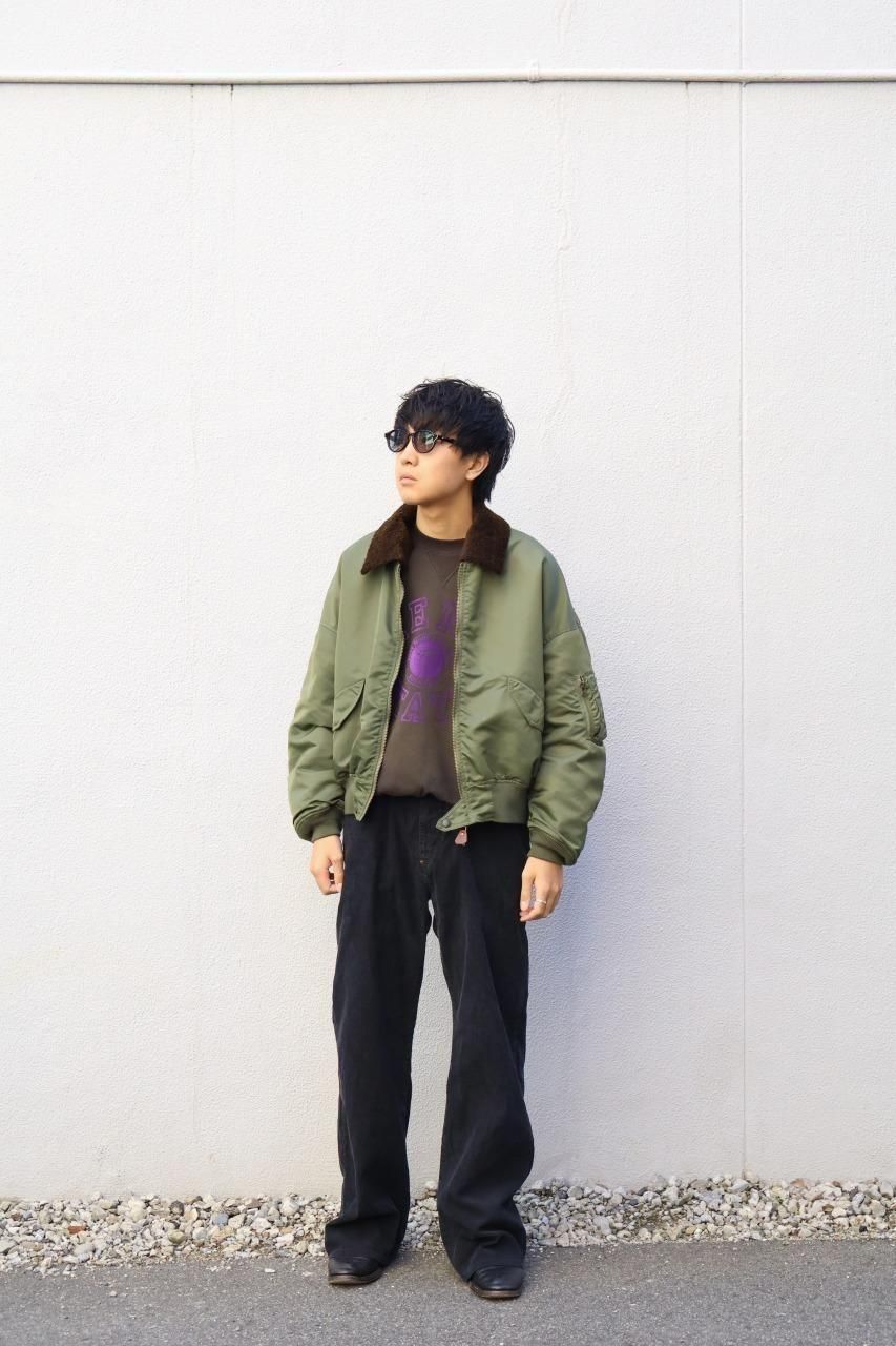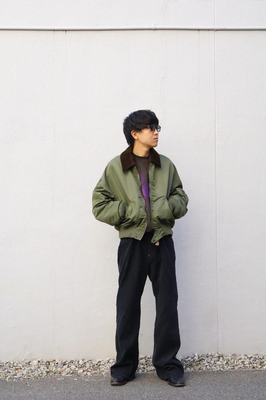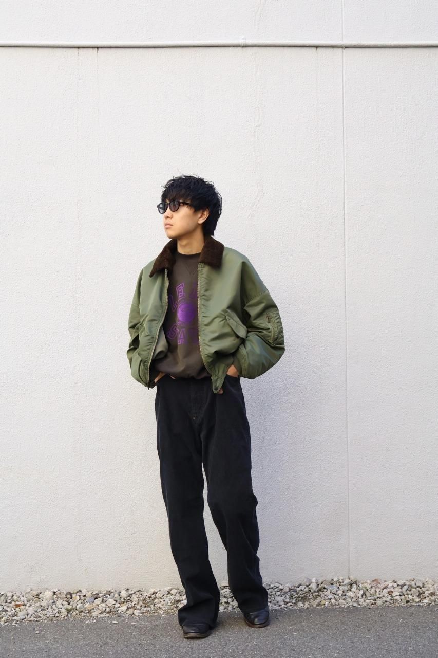 スラブ糸を使用したコーデュロイに硫化染めを施し、独特の色合いとムラ感を表現。さらに製品加工でストーンバイオを施すことで、程よくこなれた風合いに仕上げている。