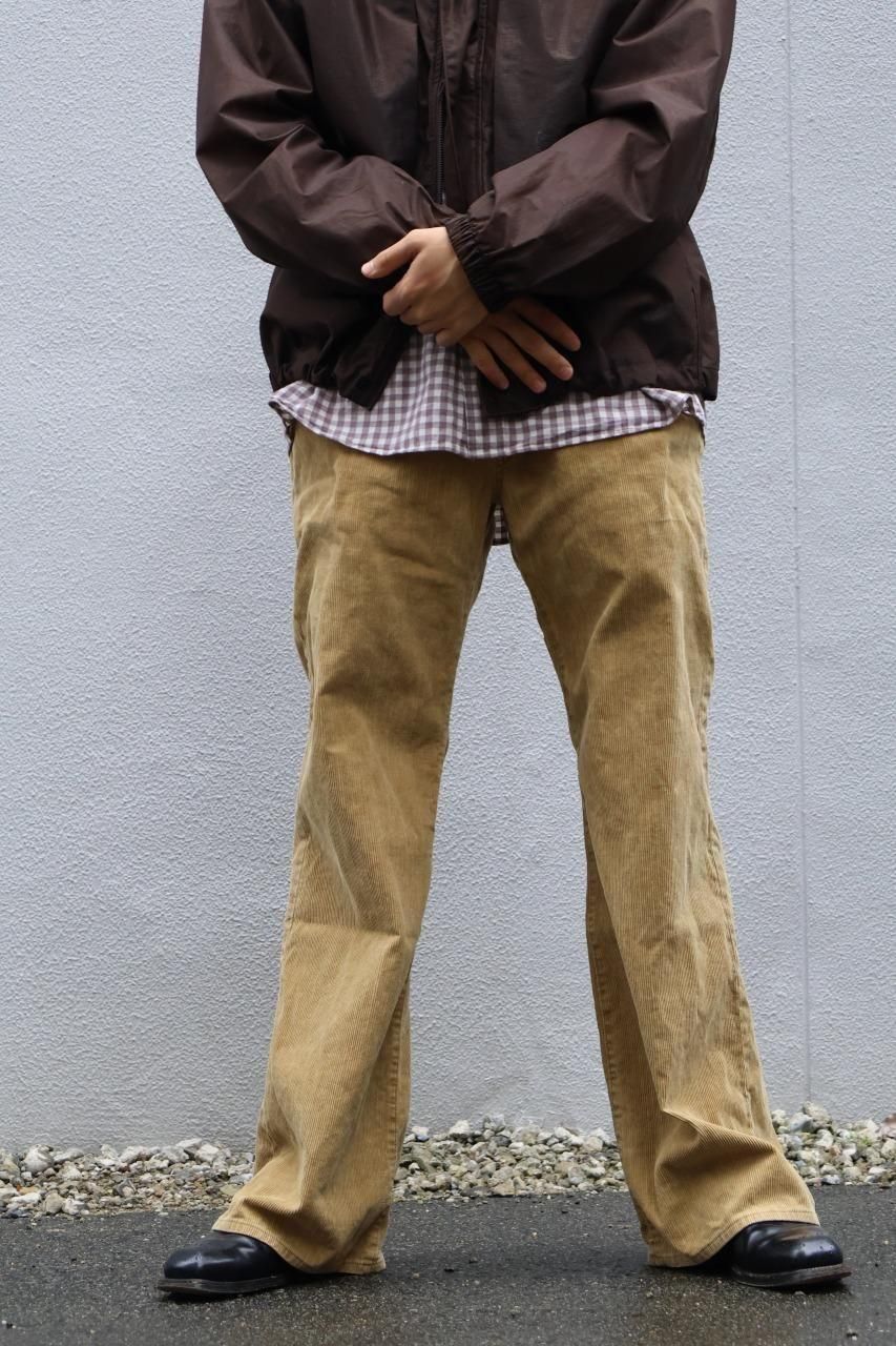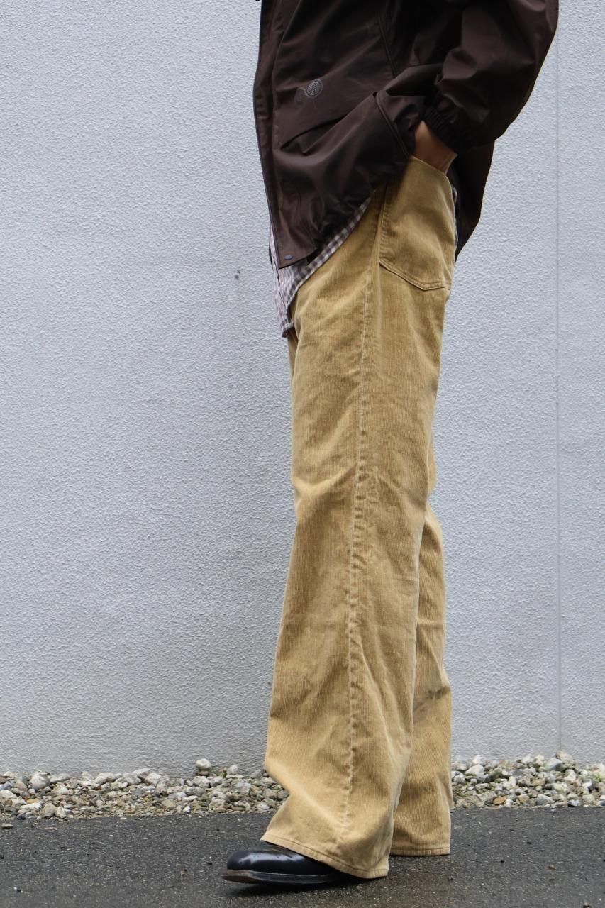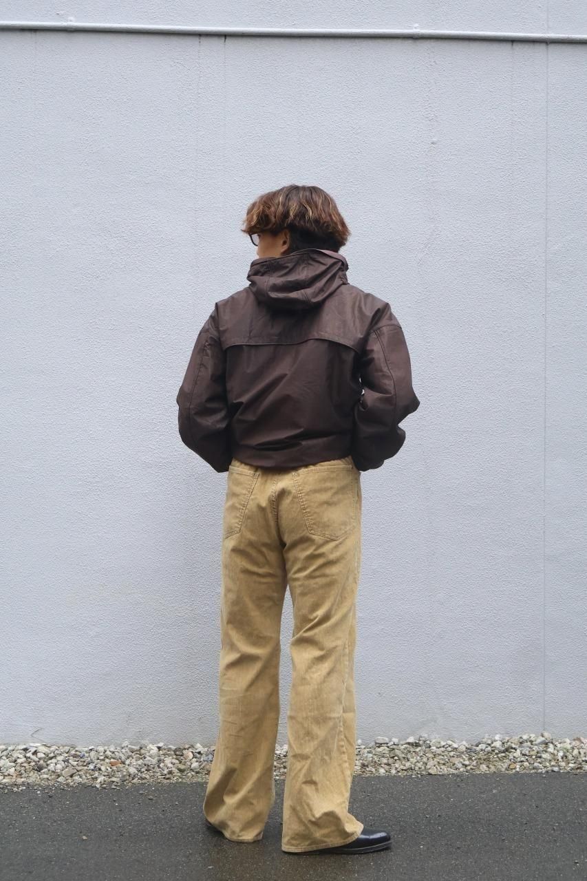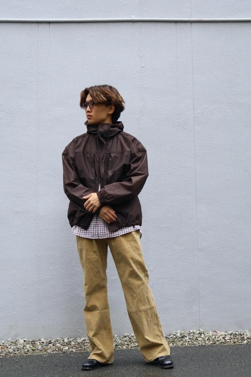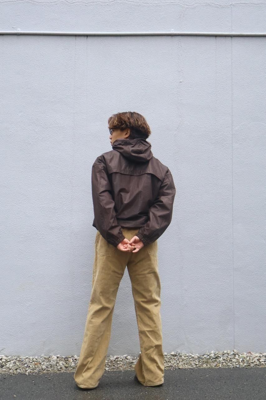 スラブ糸を使用したコーデュロイに硫化染めを施し、独特の色合いとムラ感を表現。さらに製品加工でストーンバイオを施すことで、程よくこなれた風合いに仕上げている。