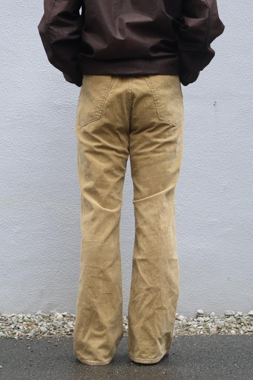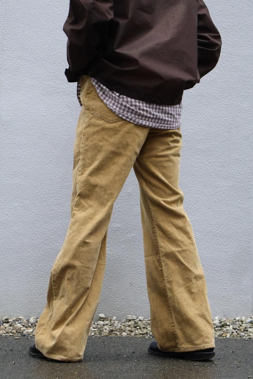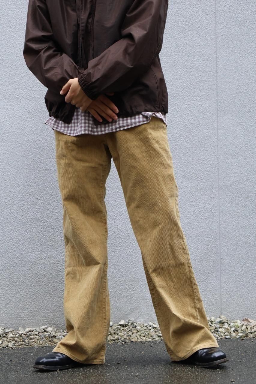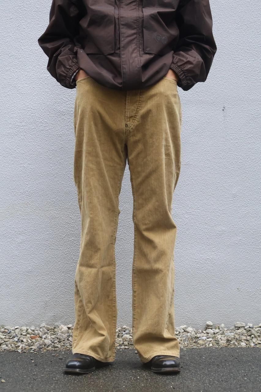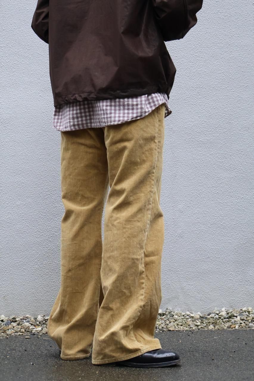 スラブ糸を使用したコーデュロイに硫化染めを施し、独特の色合いとムラ感を表現。さらに製品加工でストーンバイオを施すことで、程よくこなれた風合いに仕上げている。