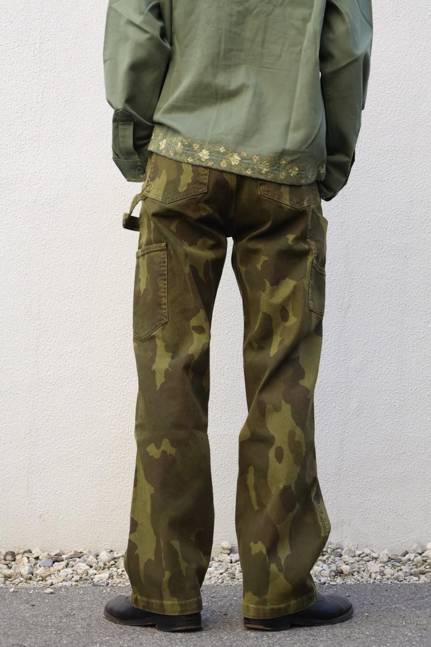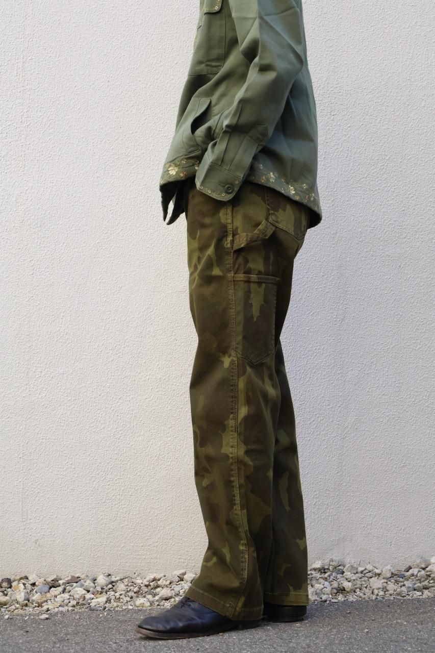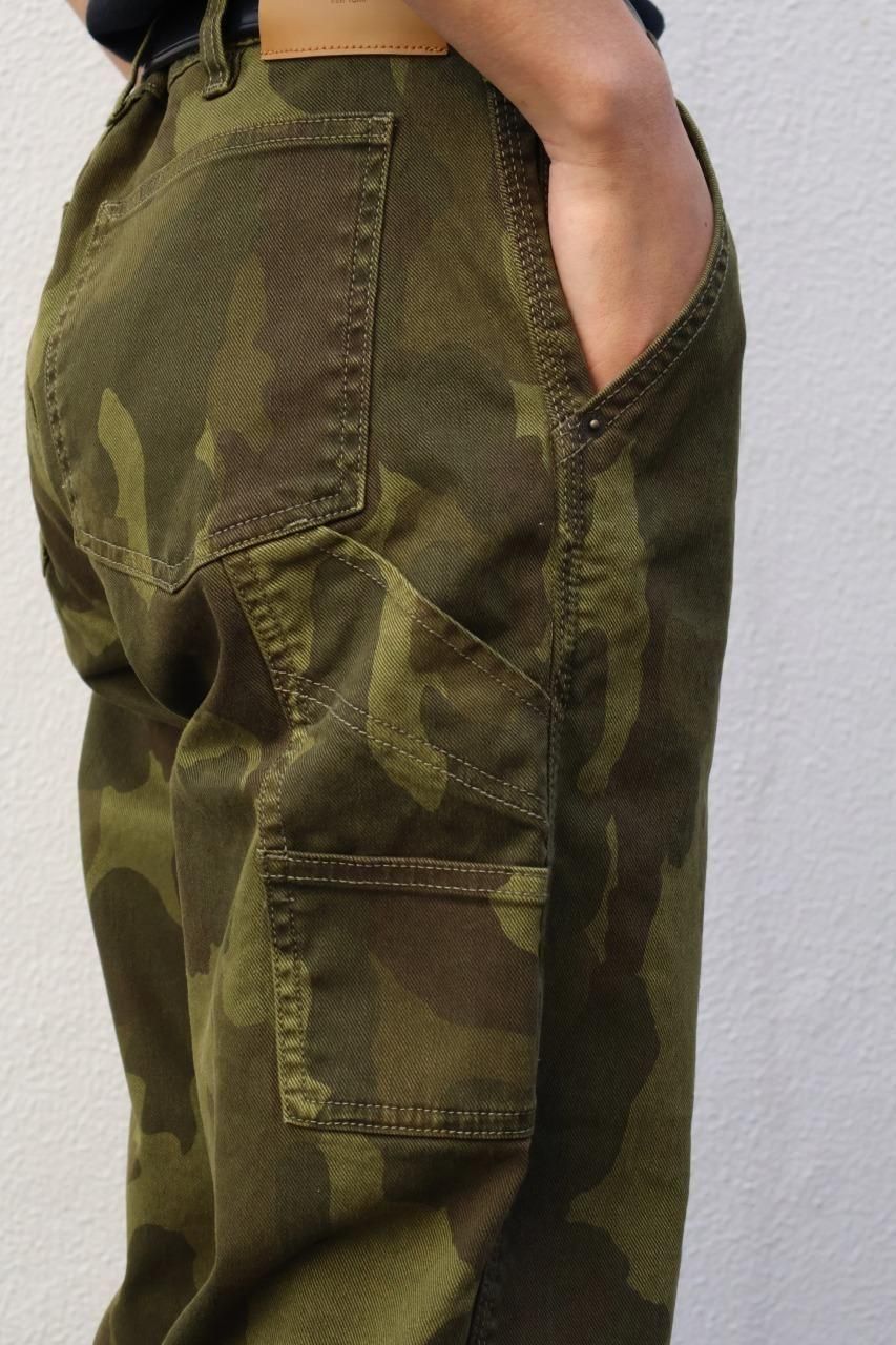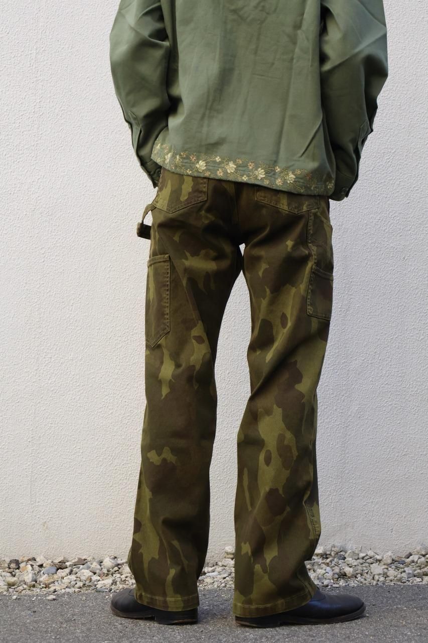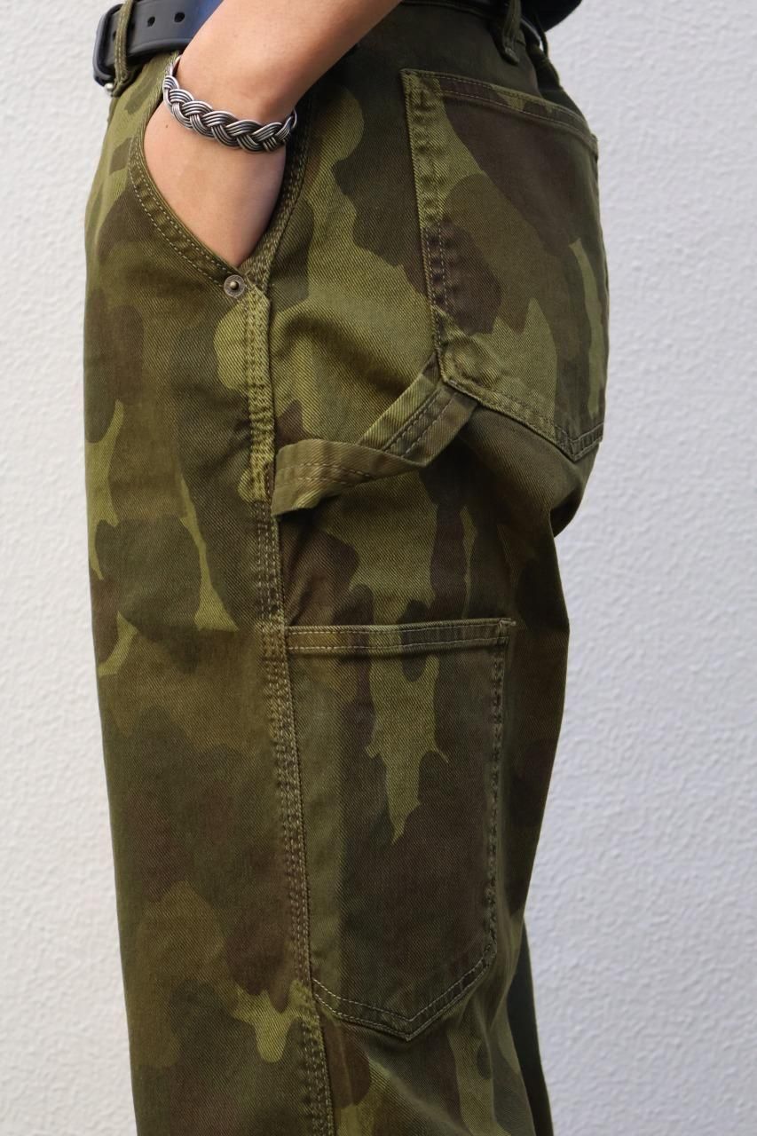 ブランドオリジナルのカモ柄で作られたペインターパンツ。