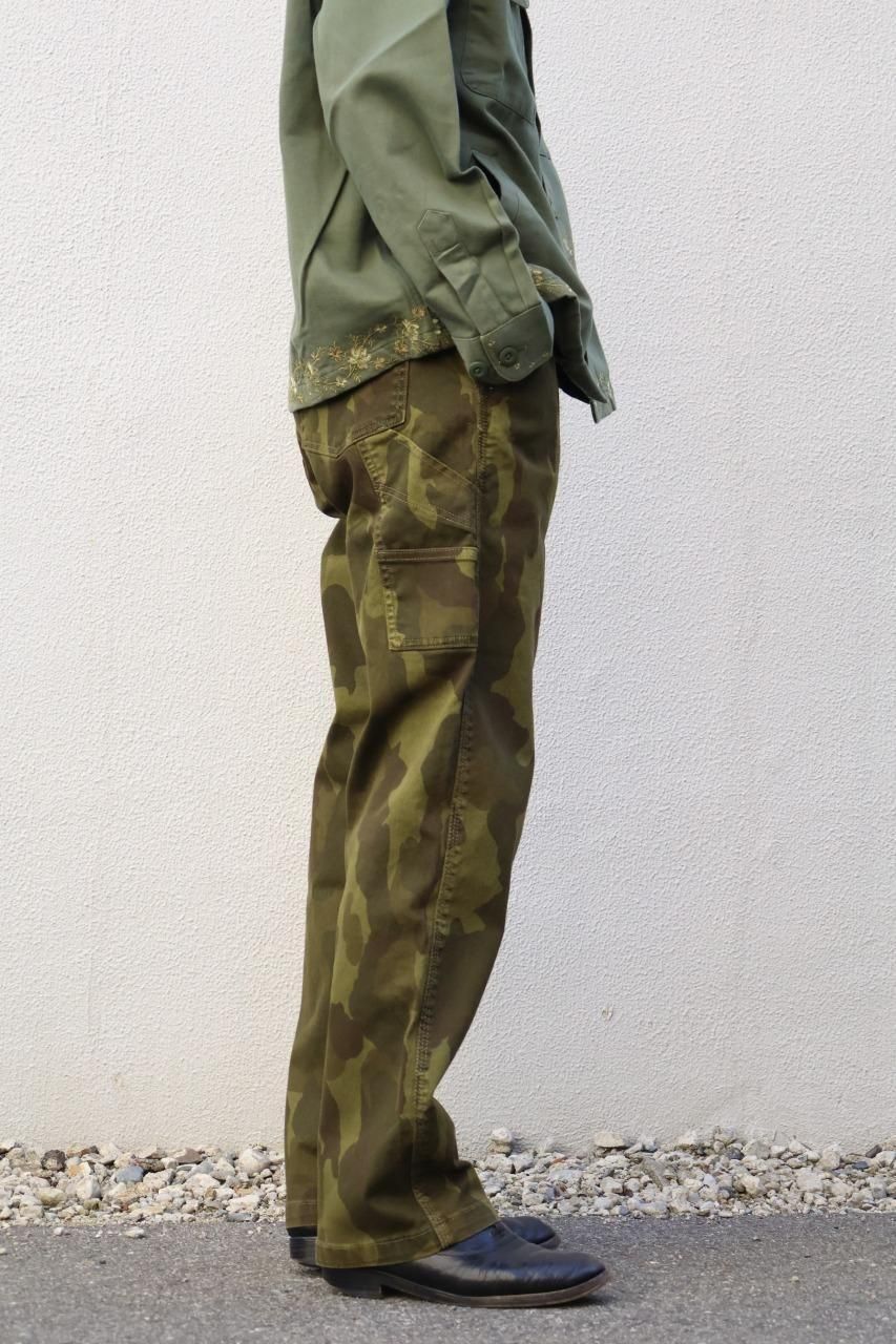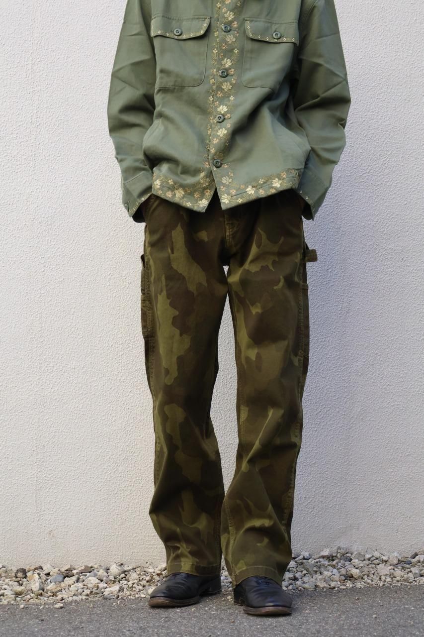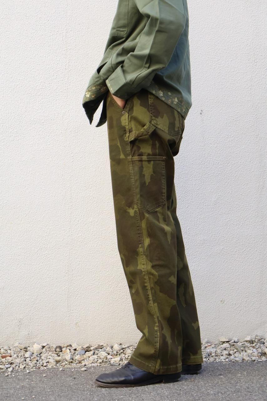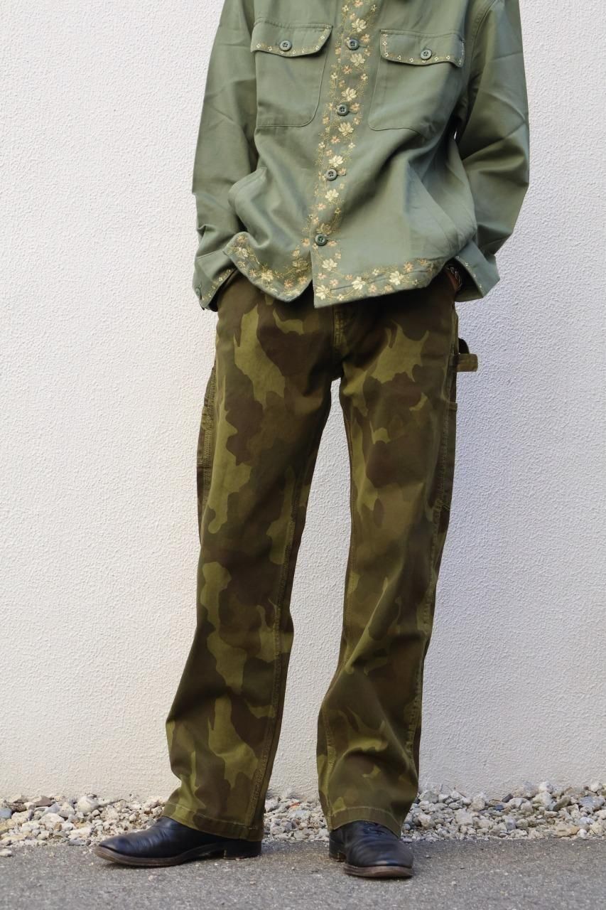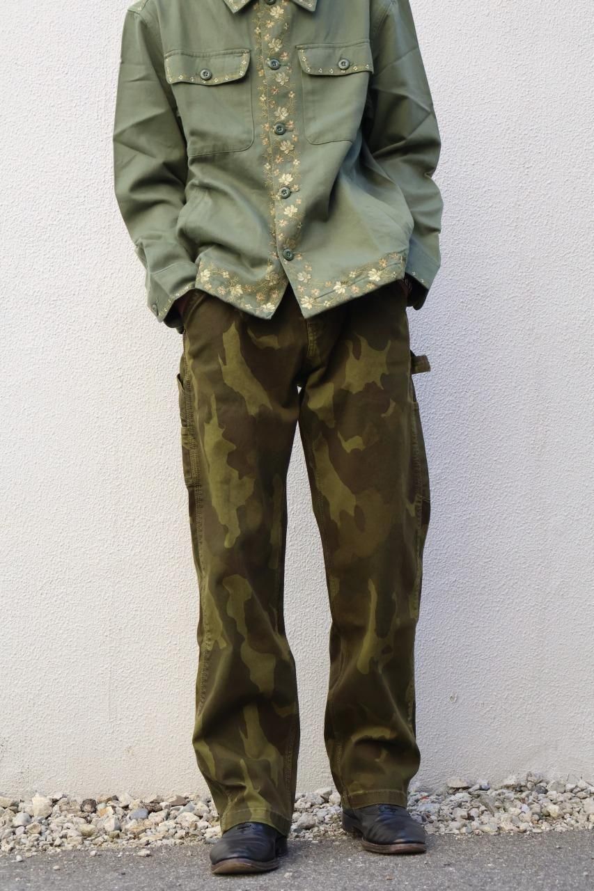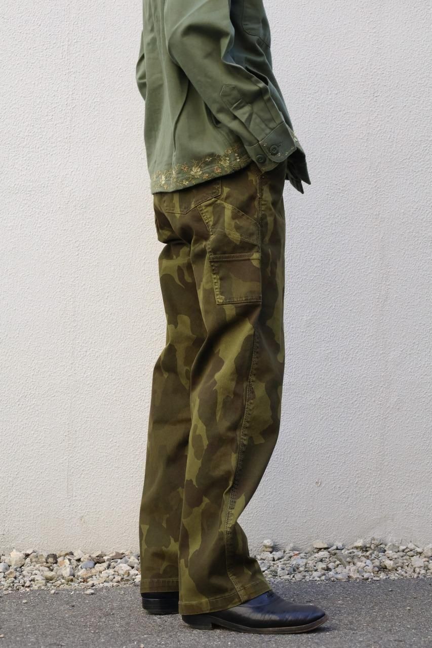 ブランドオリジナルのカモ柄で作られたペインターパンツ。