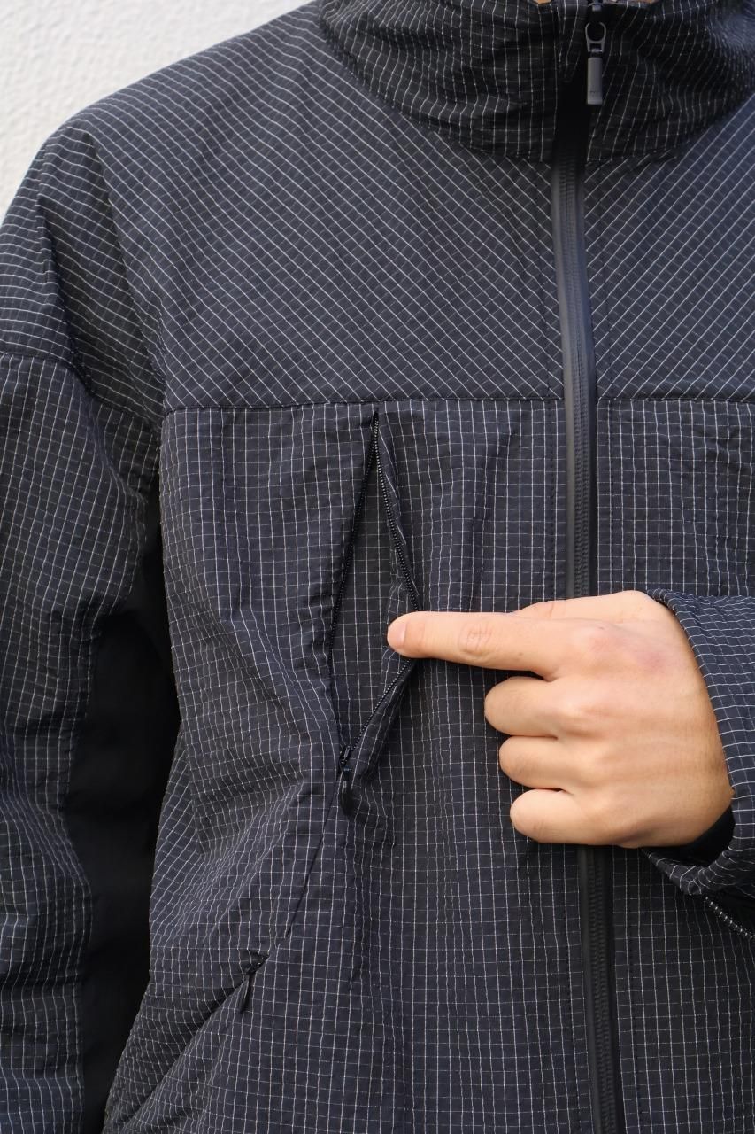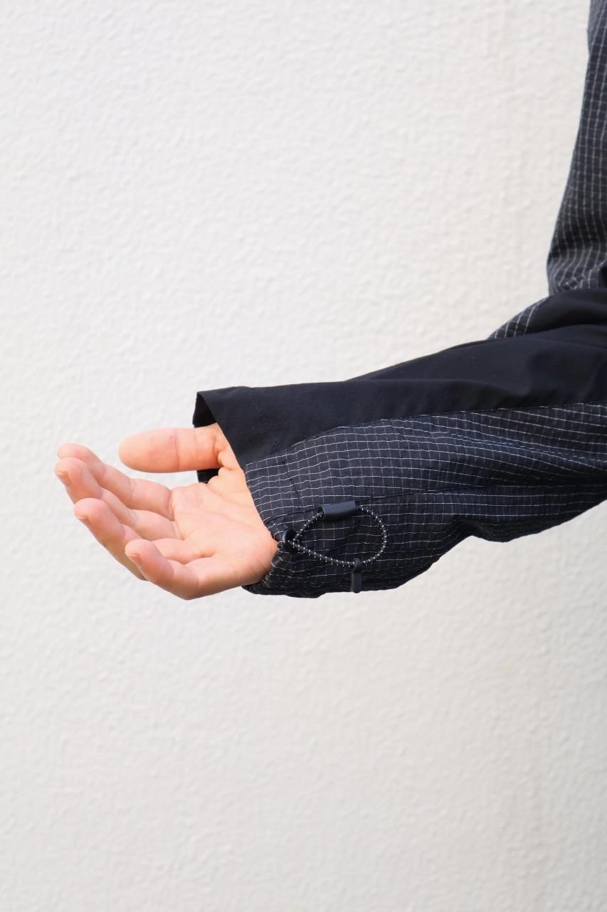 立体的な構造と主素材の Dyneema® による軽さで持ち運びしやすい軽量アウターになります。