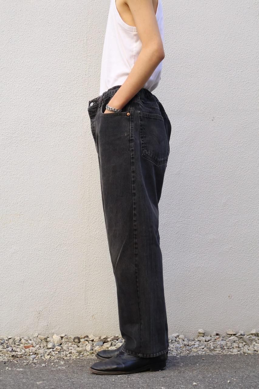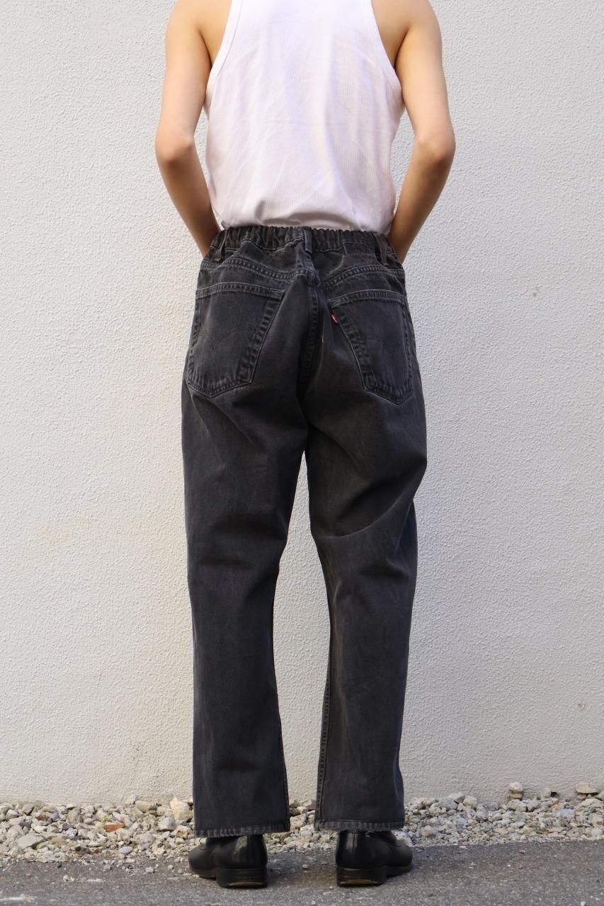 リーバイス505の大きいサイズをアメリカで集め、ウエストにドローコードとゴムを搭載しました。